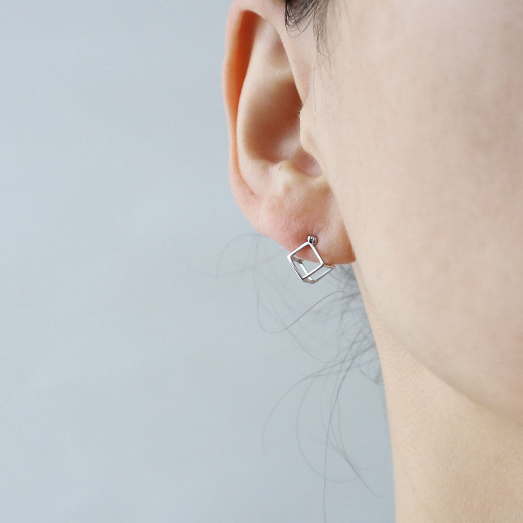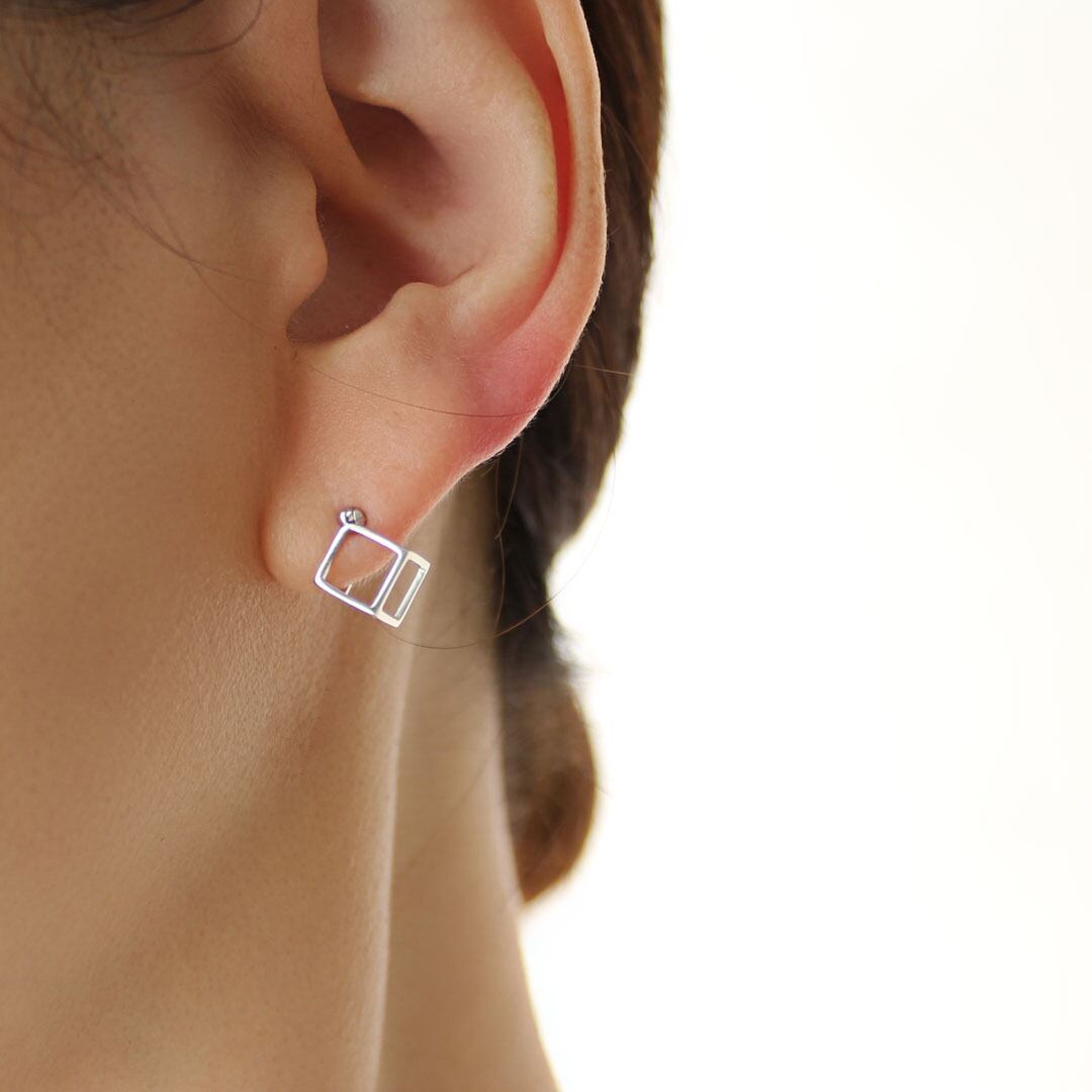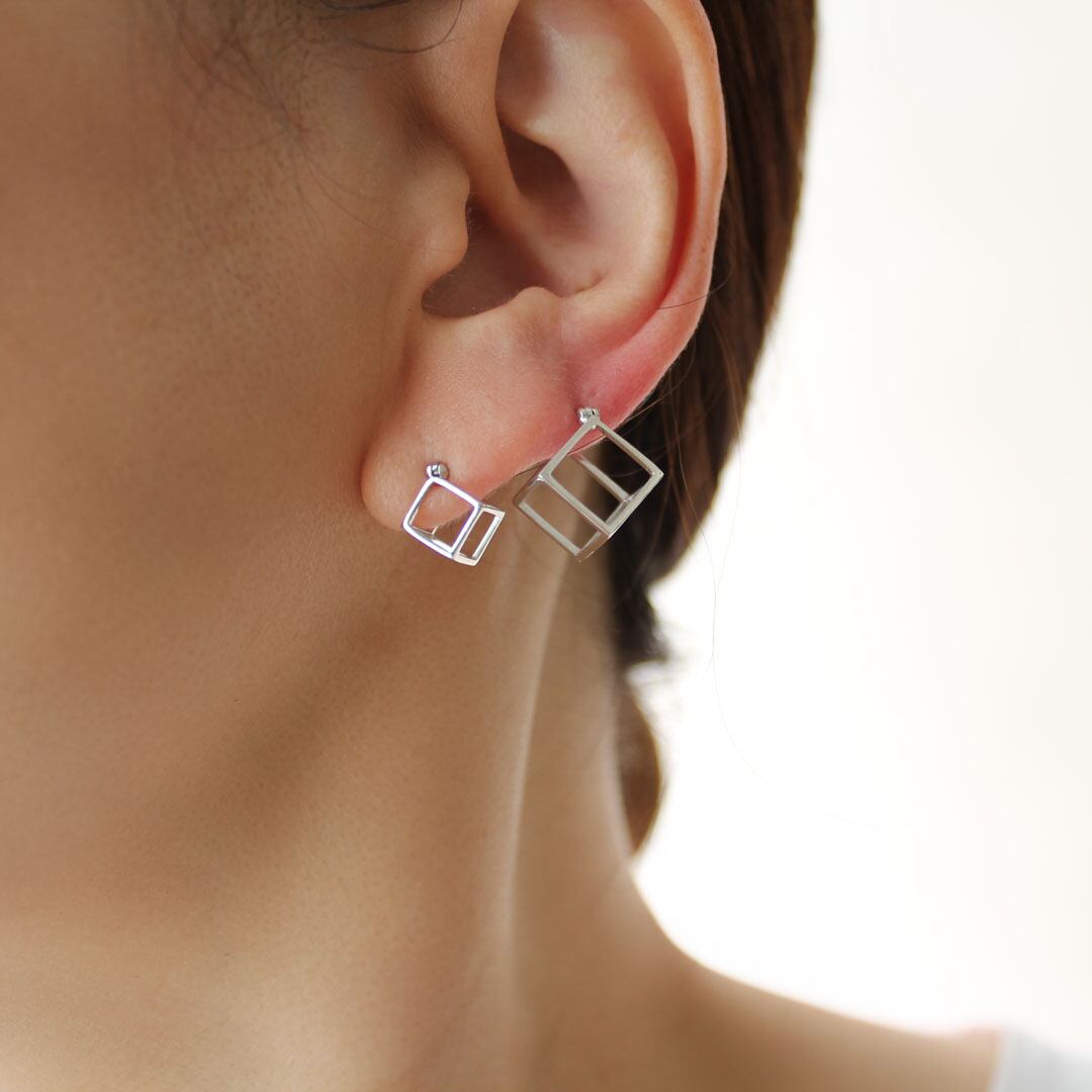 スクエアをモチーフにしたSサイズの3Dピアス。