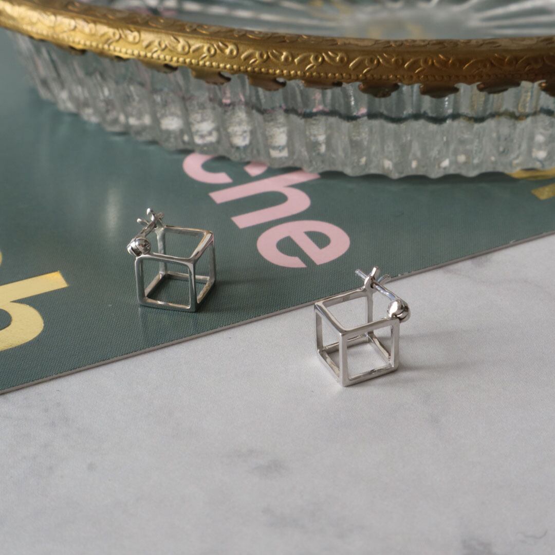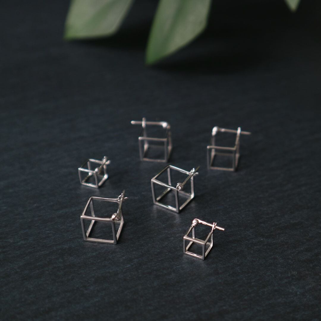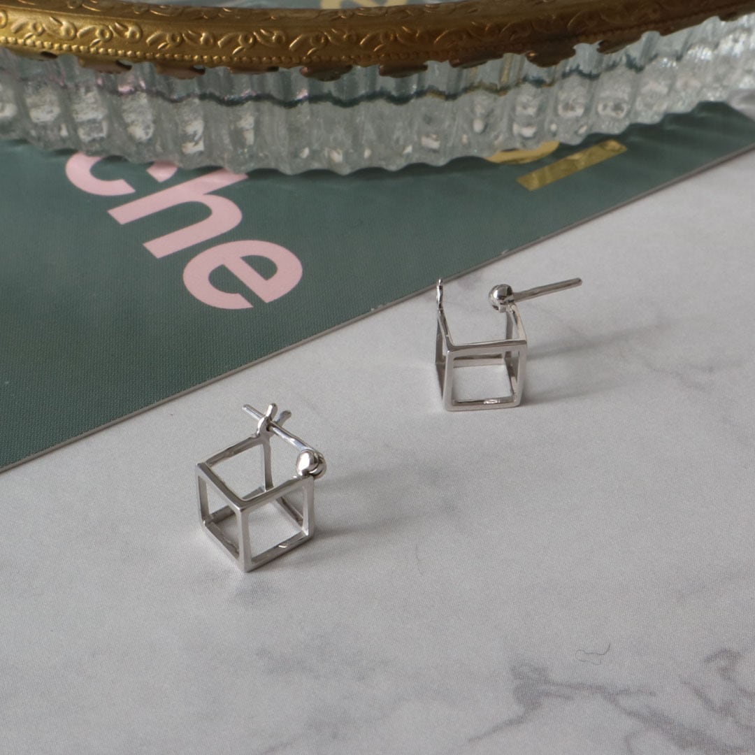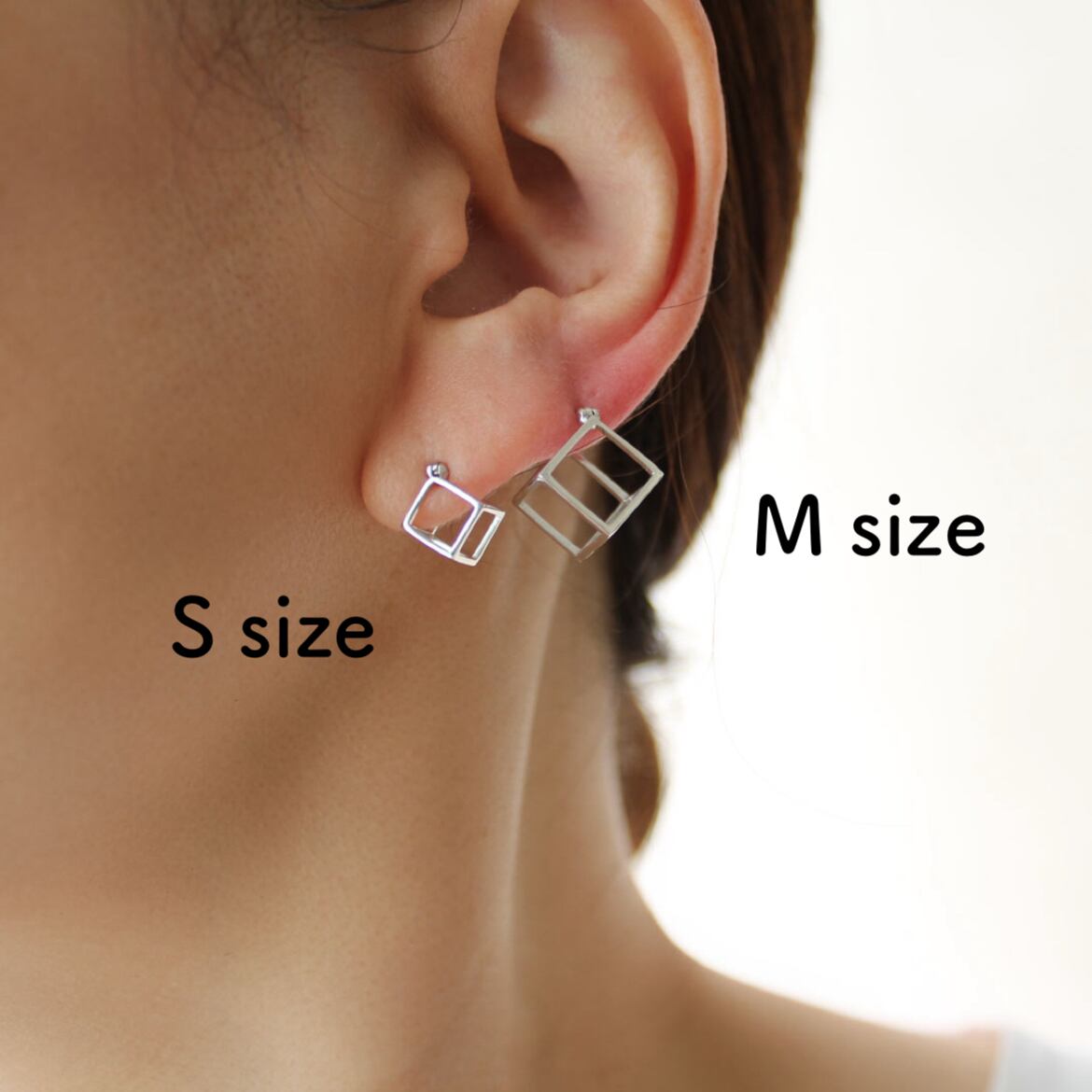 スクエアをモチーフにしたSサイズの3Dピアス。