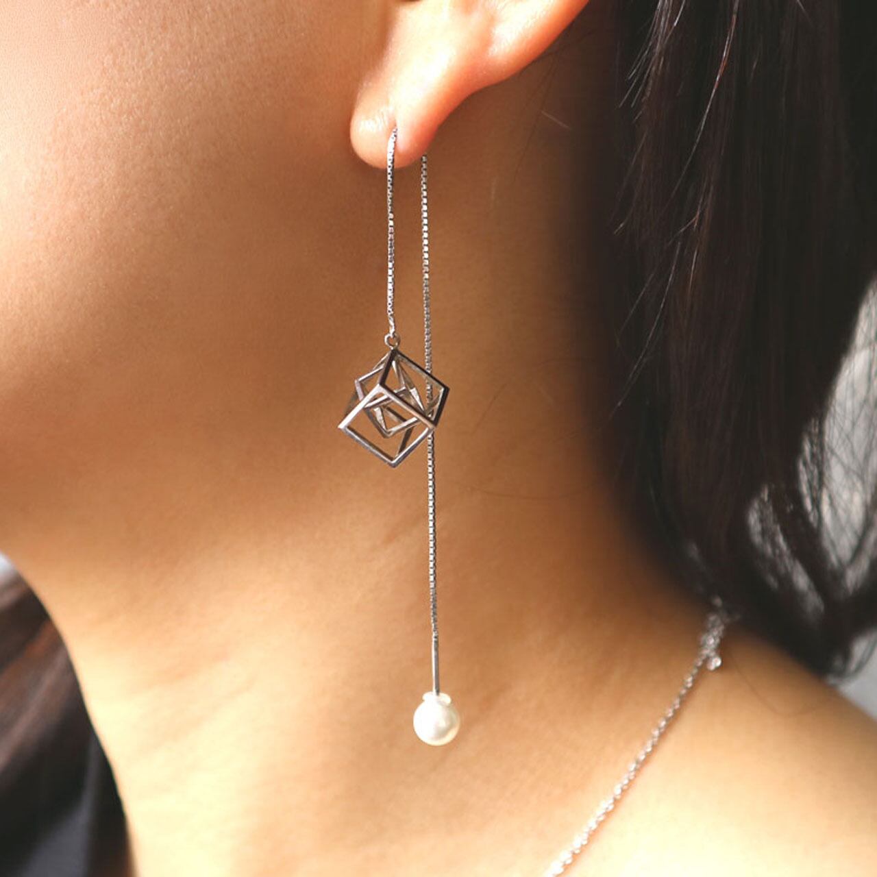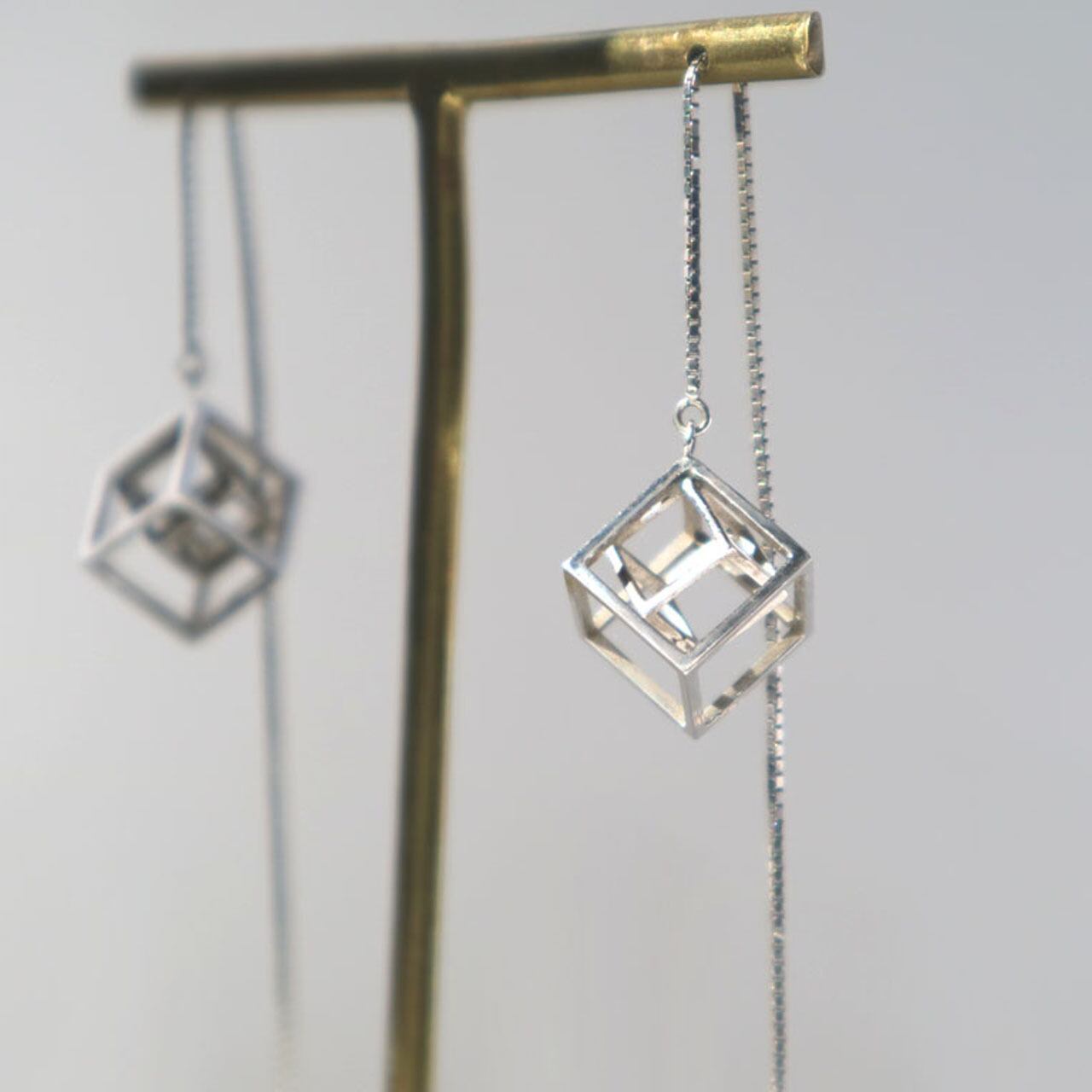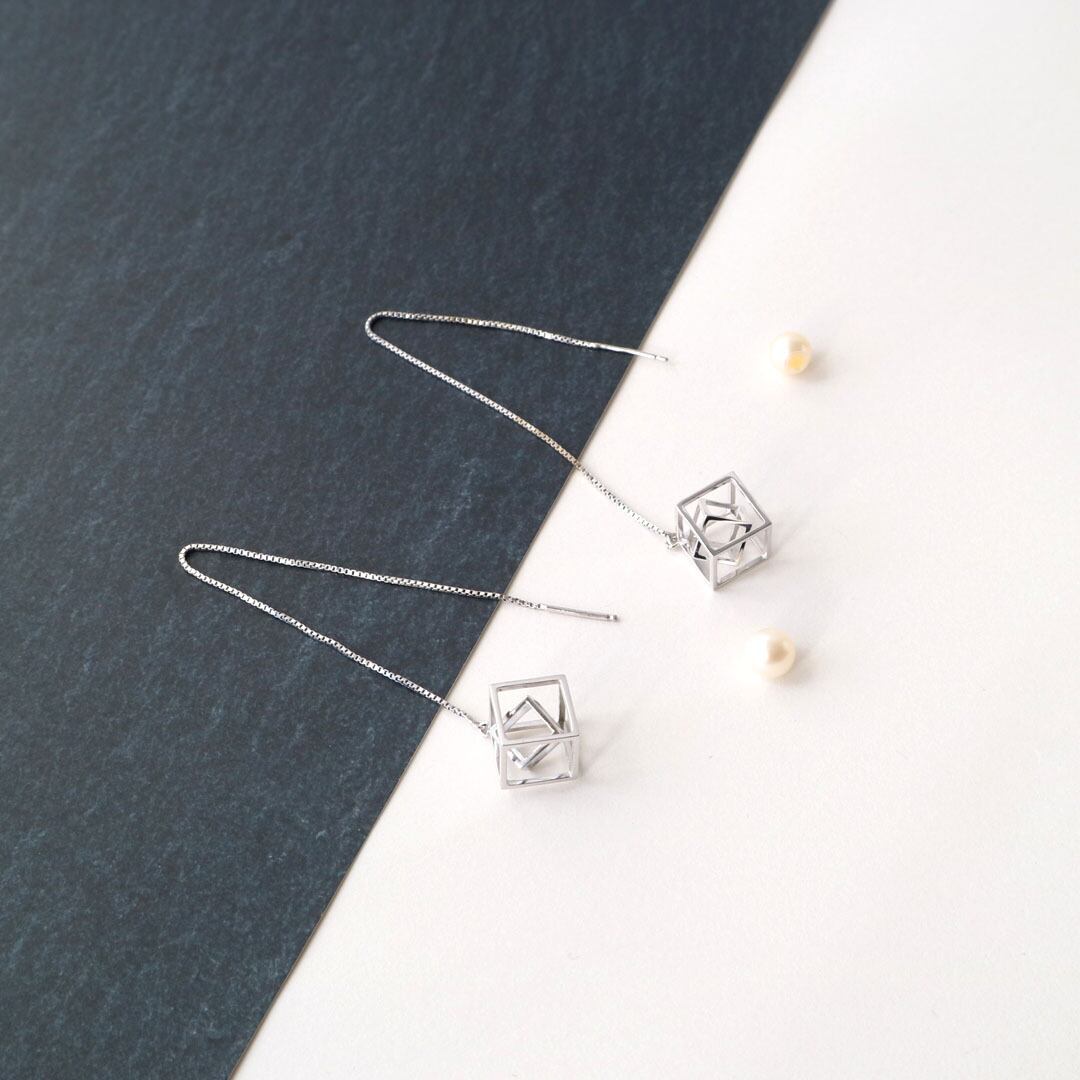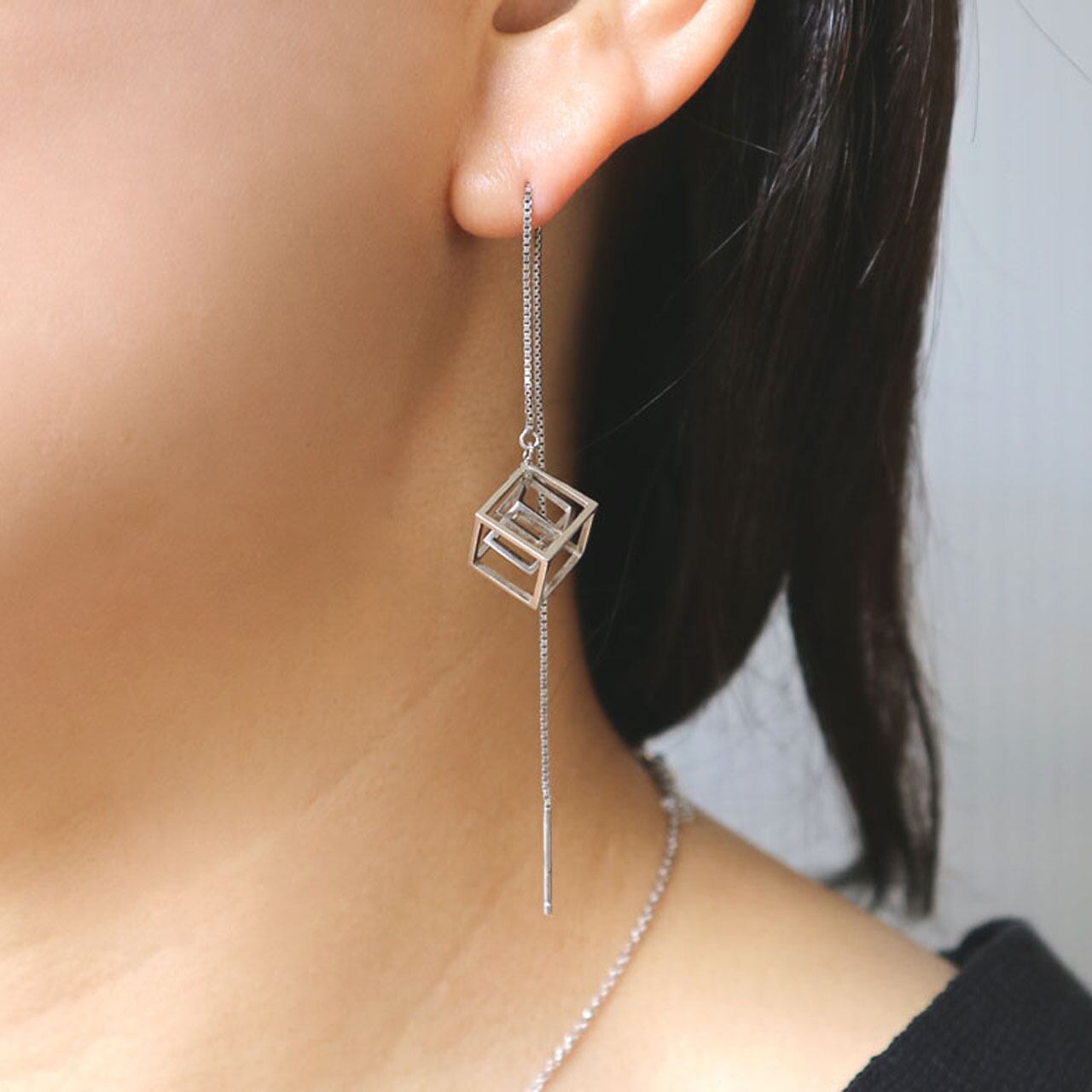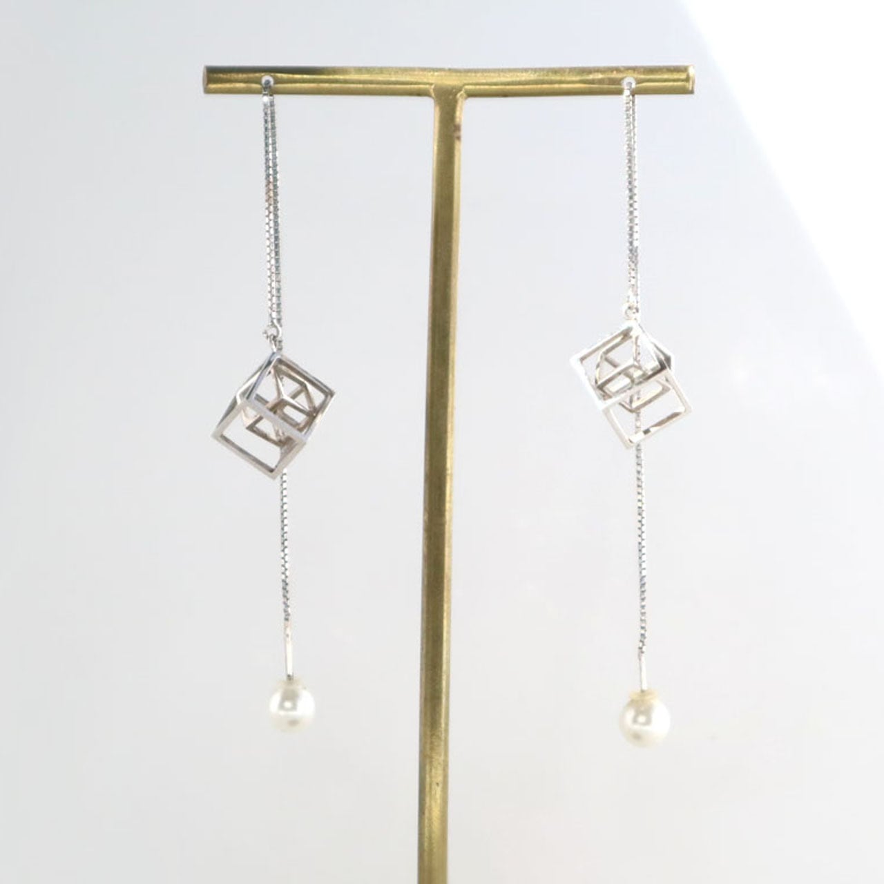 立体スクエア型の中に一回り小さなスクエアが入ることでキラキラ輝くトップがポイントのデザイン。