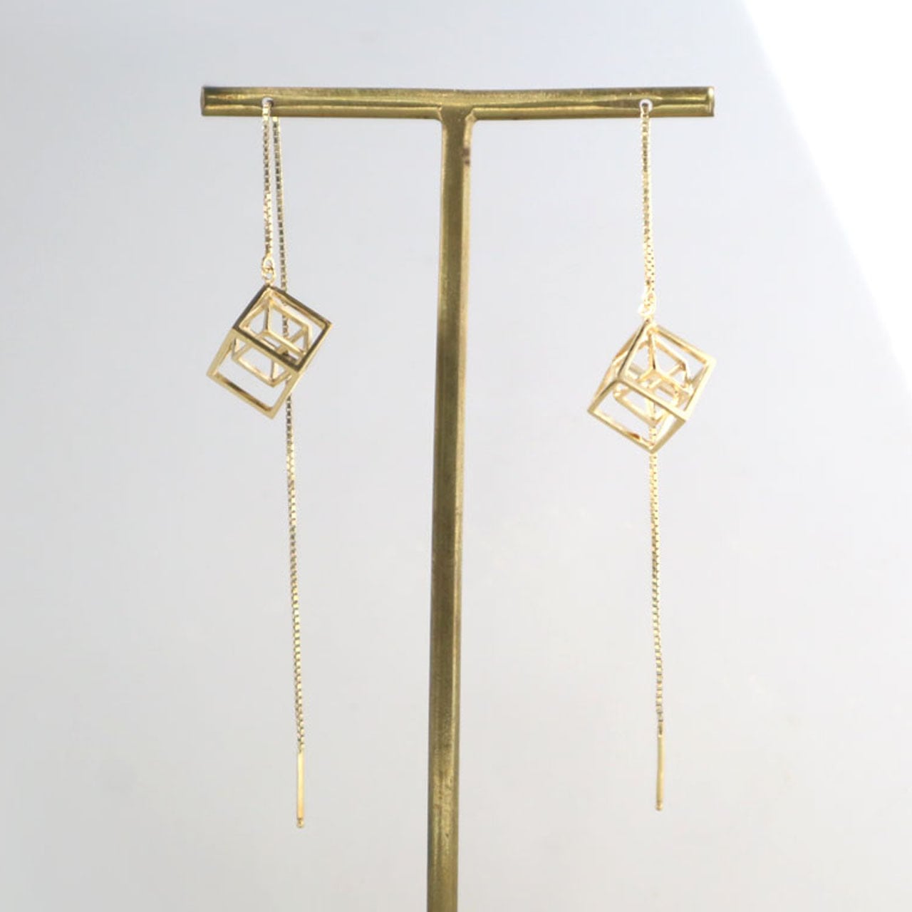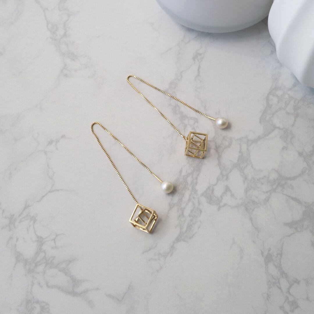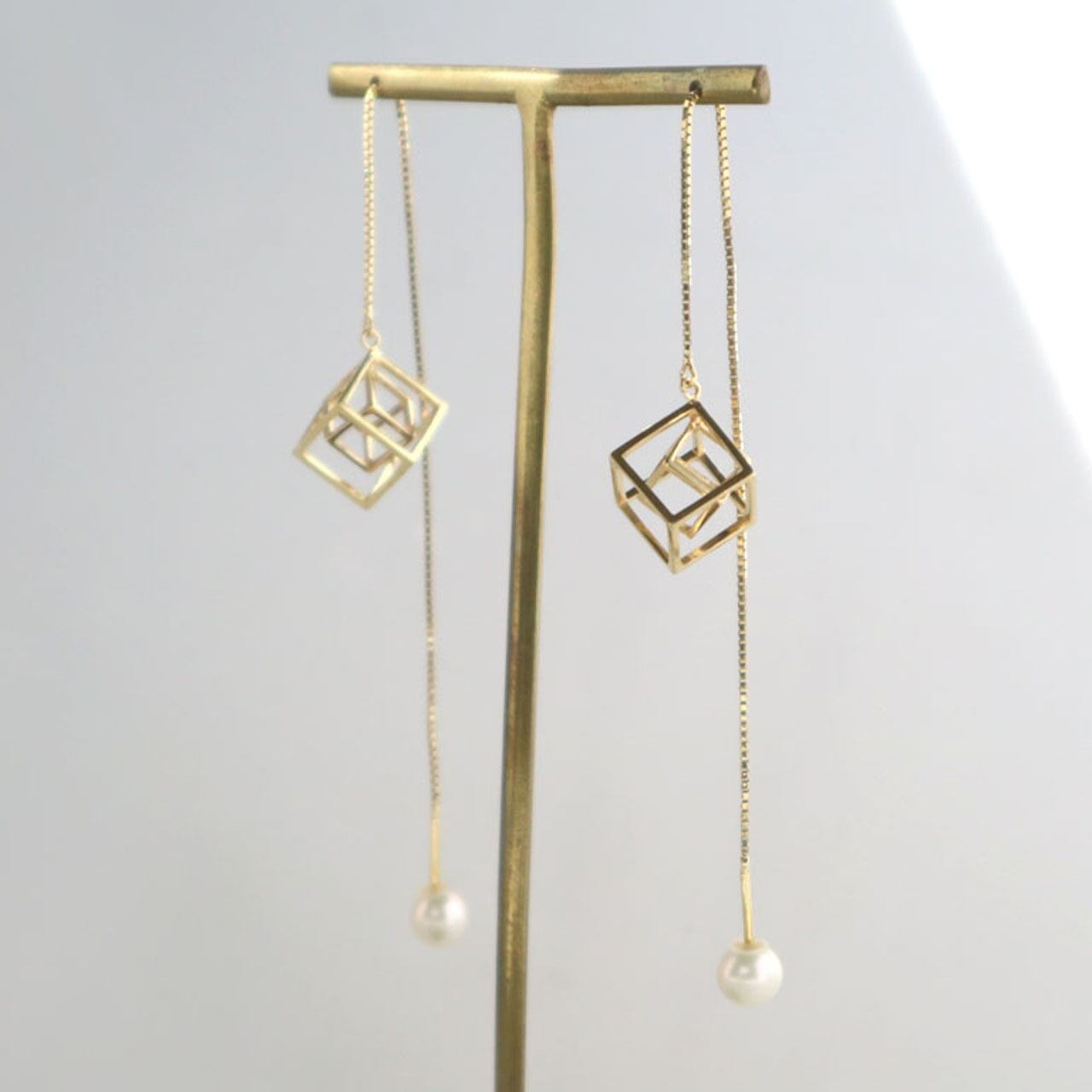 立体スクエア型の中に一回り小さなスクエアが入ることでキラキラ輝くトップがポイントのデザイン。