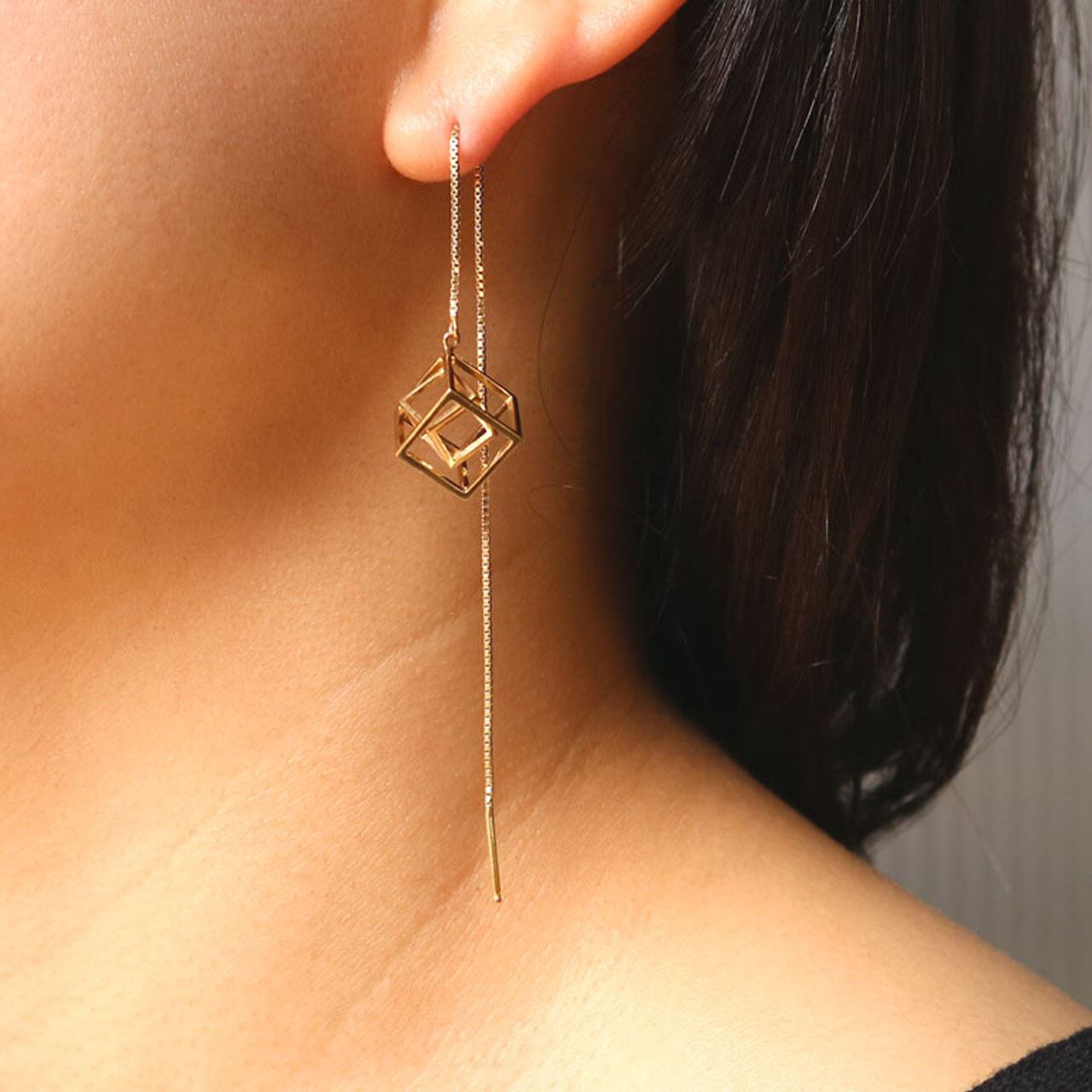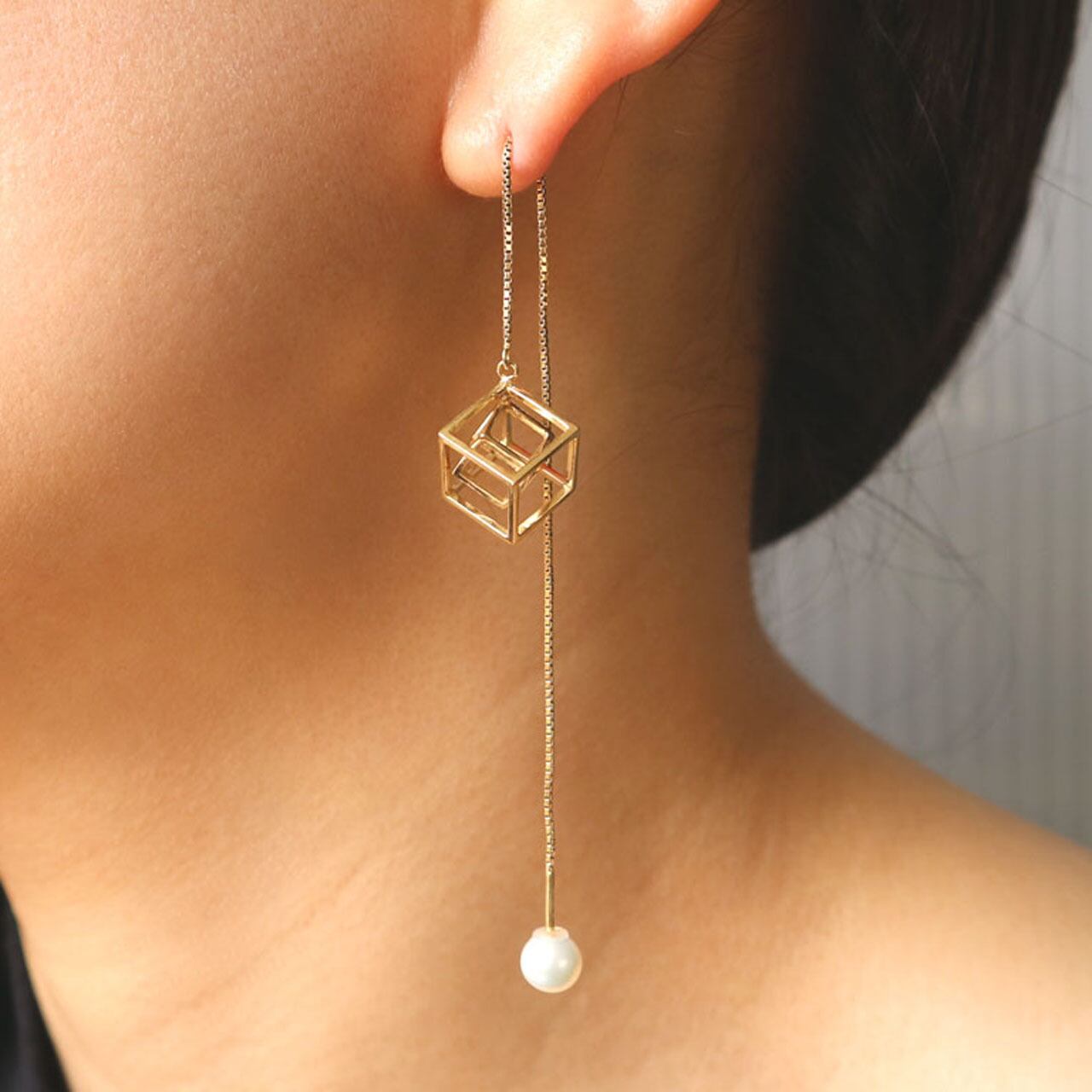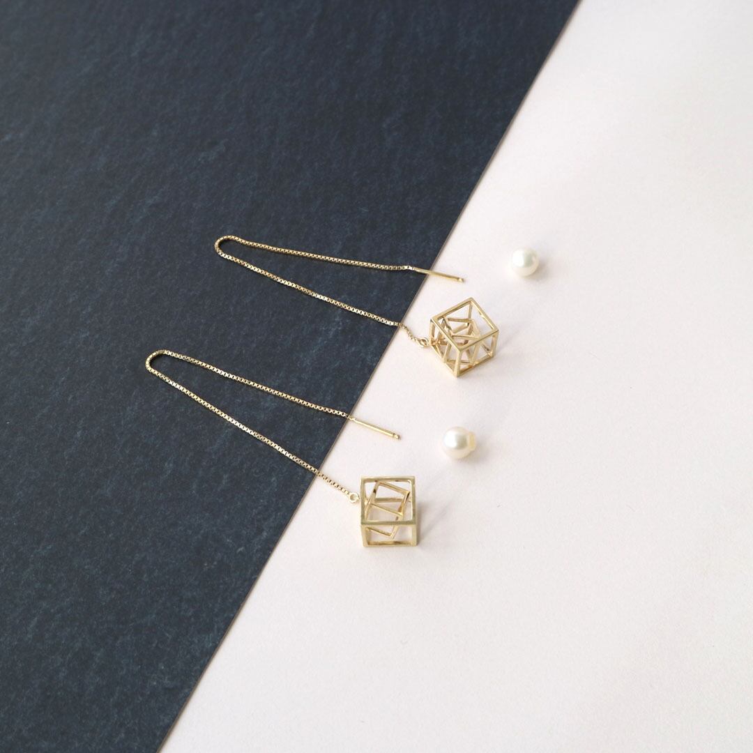 立体スクエア型の中に一回り小さなスクエアが入ることでキラキラ輝くトップがポイントのデザイン。