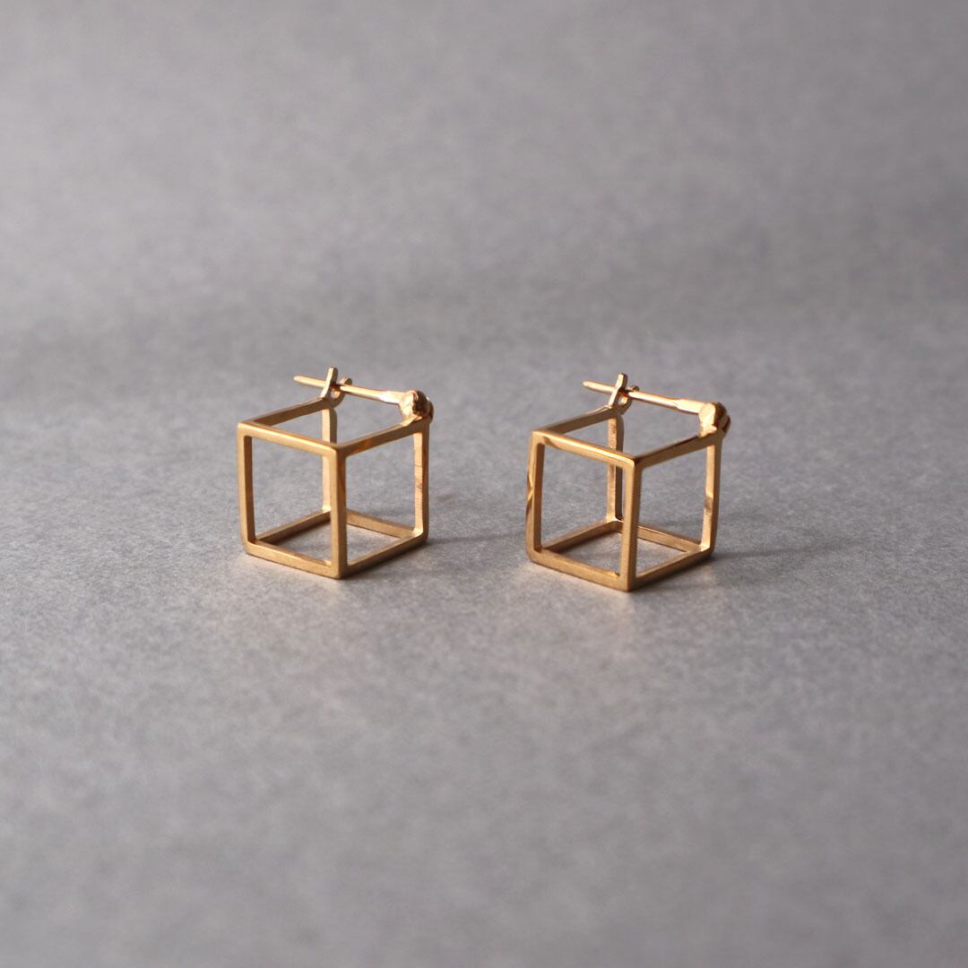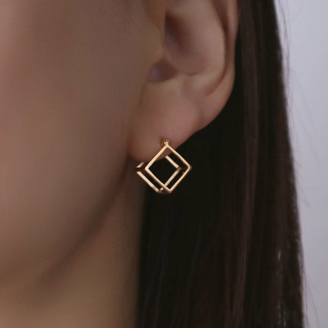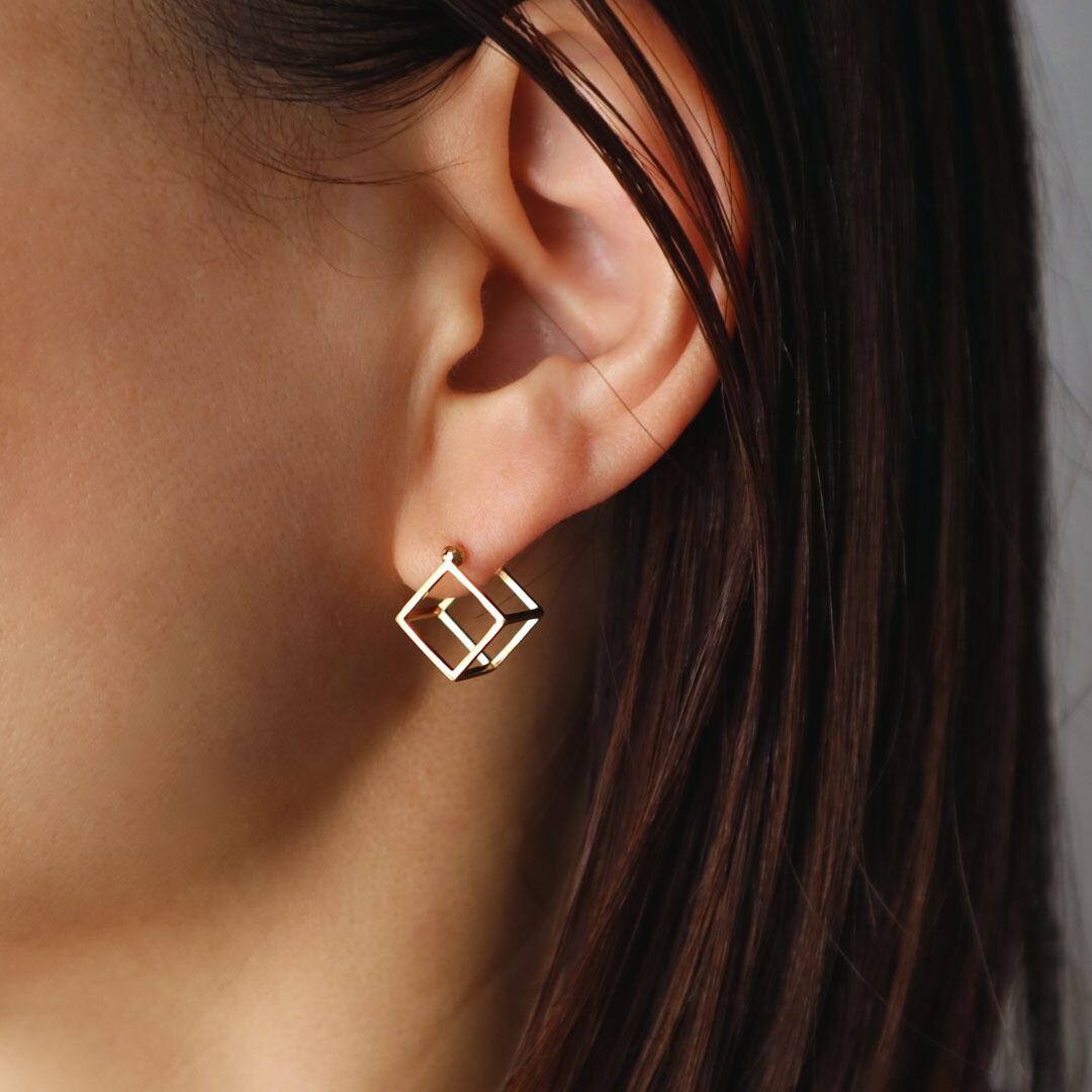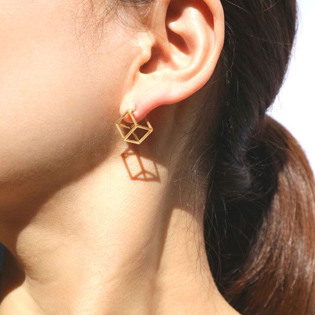 スクエアをモチーフにしたMサイズの 3Dピアス。