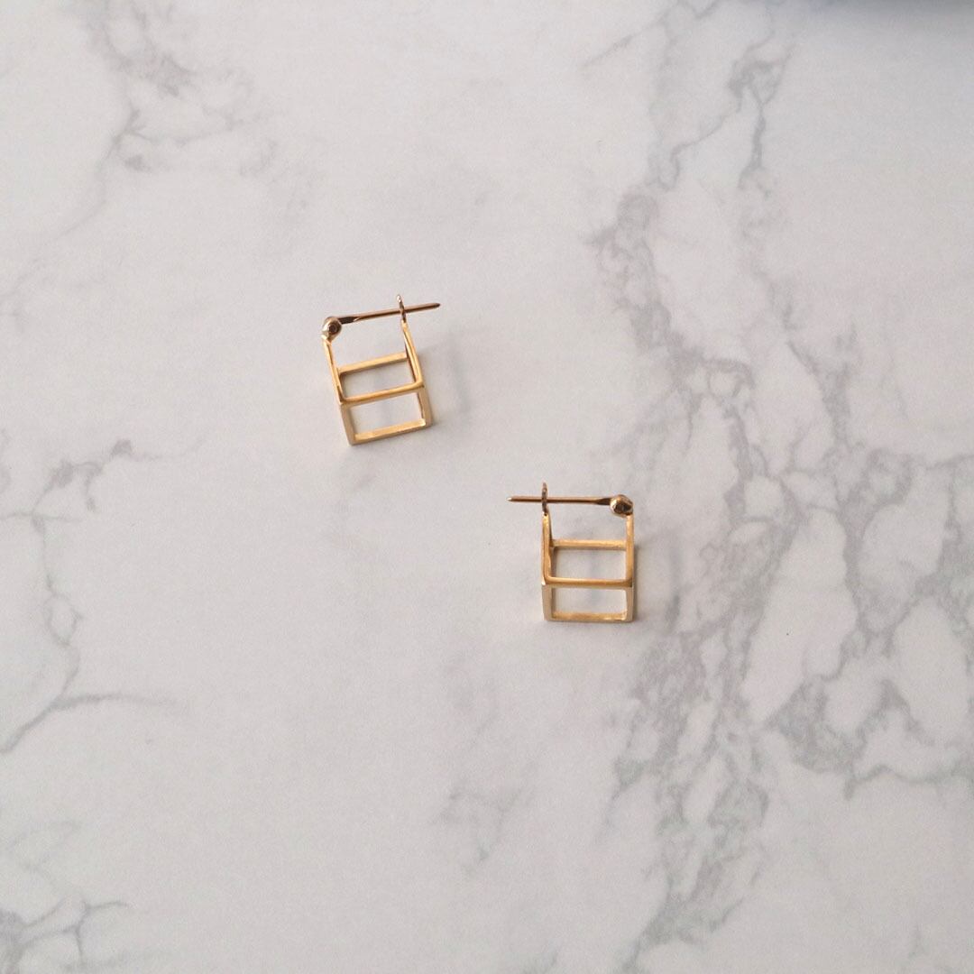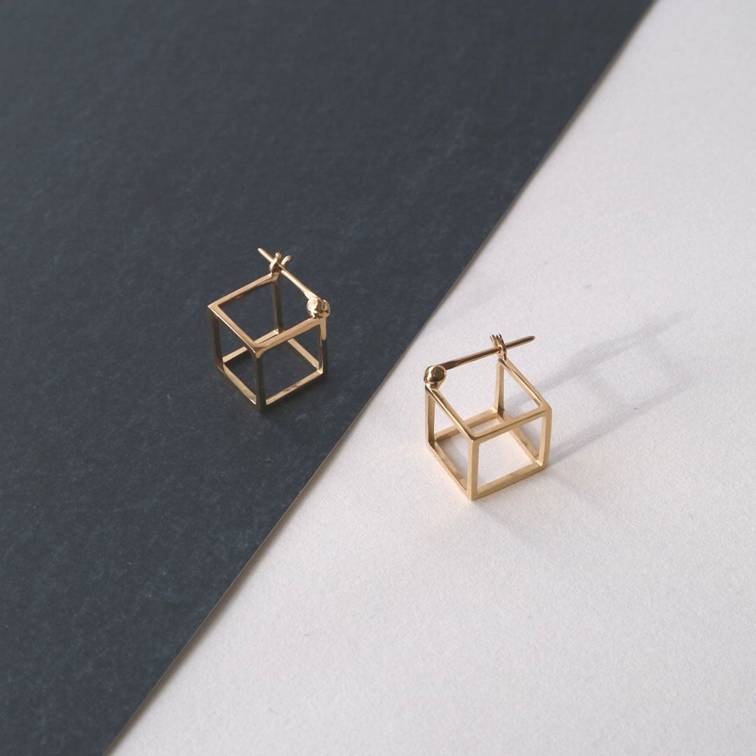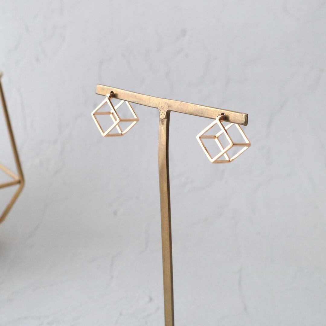 スクエアをモチーフにしたMサイズの 3Dピアス。