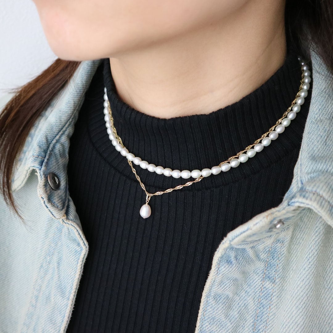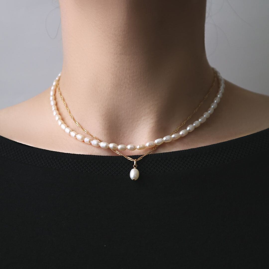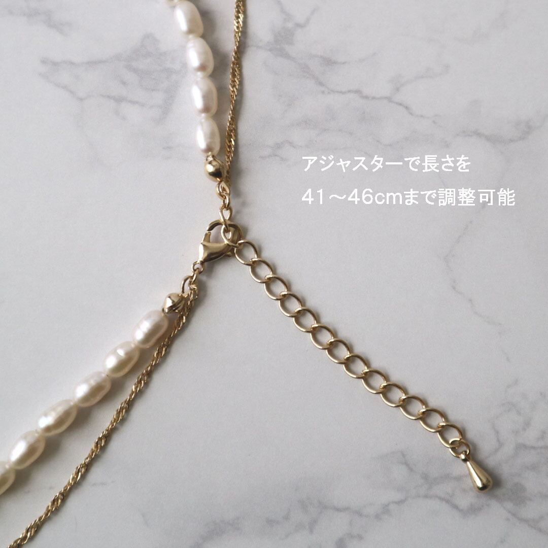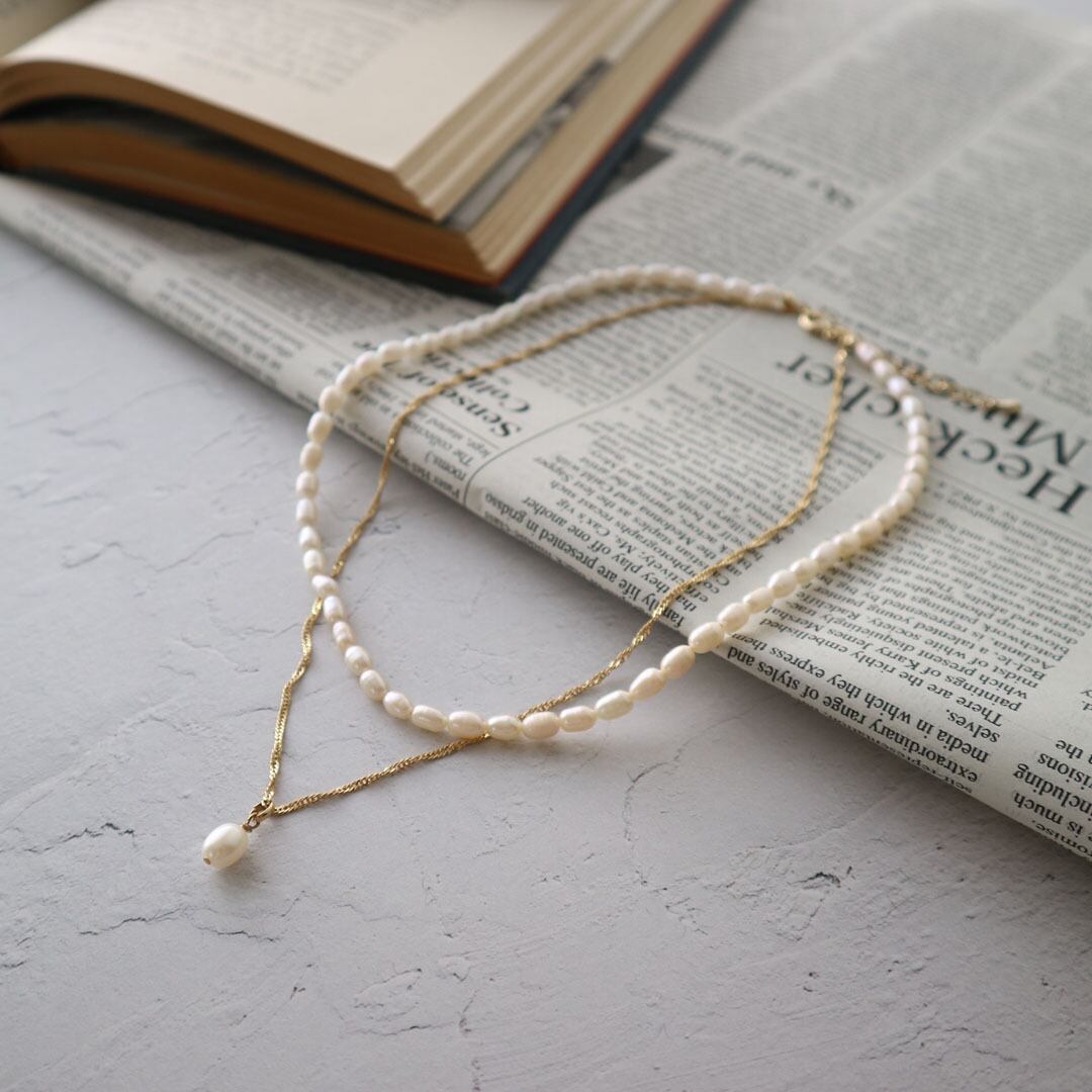 淡水パールとエレガントなチェーンが織りなす美しい2連ネックレス。