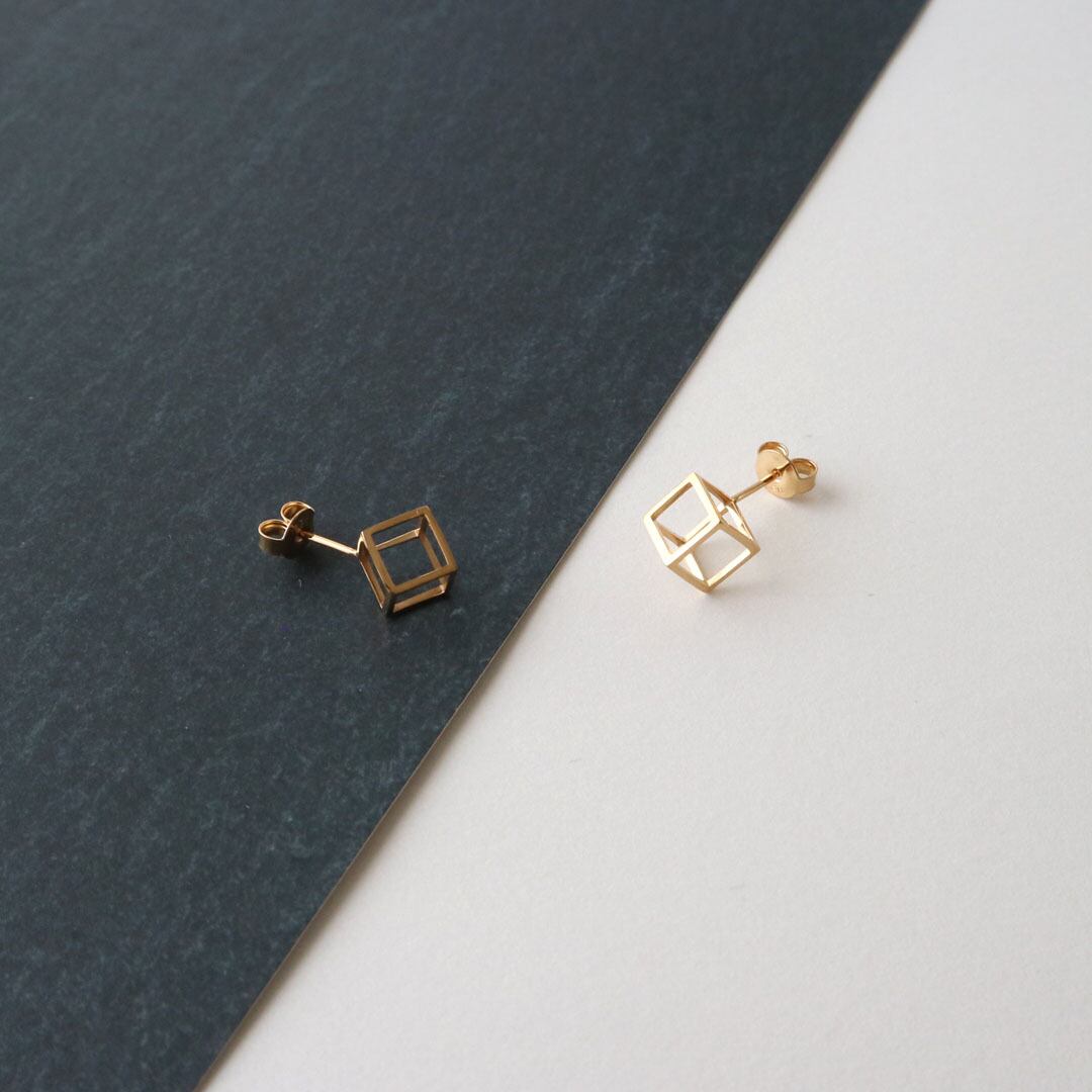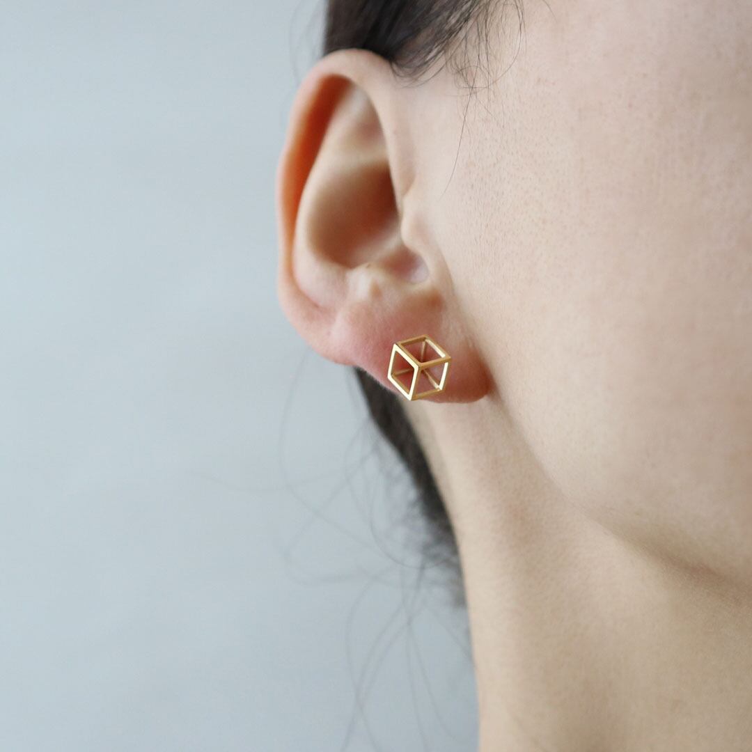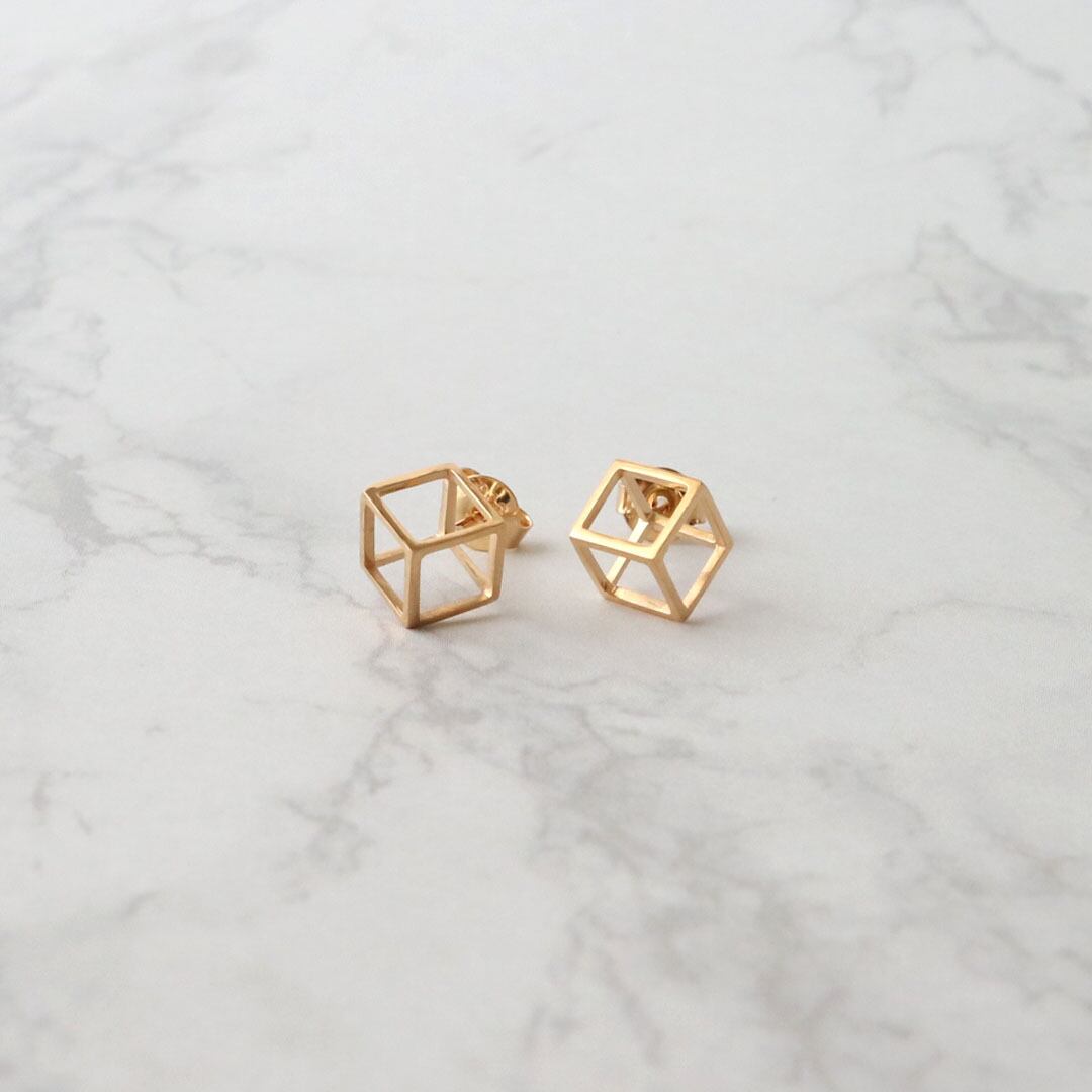 [silver925] 小さい立体スクエアのピアス*ゴールドカラー