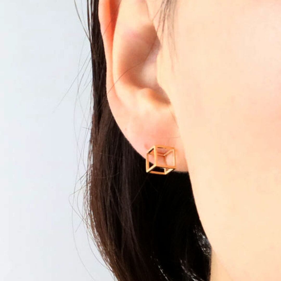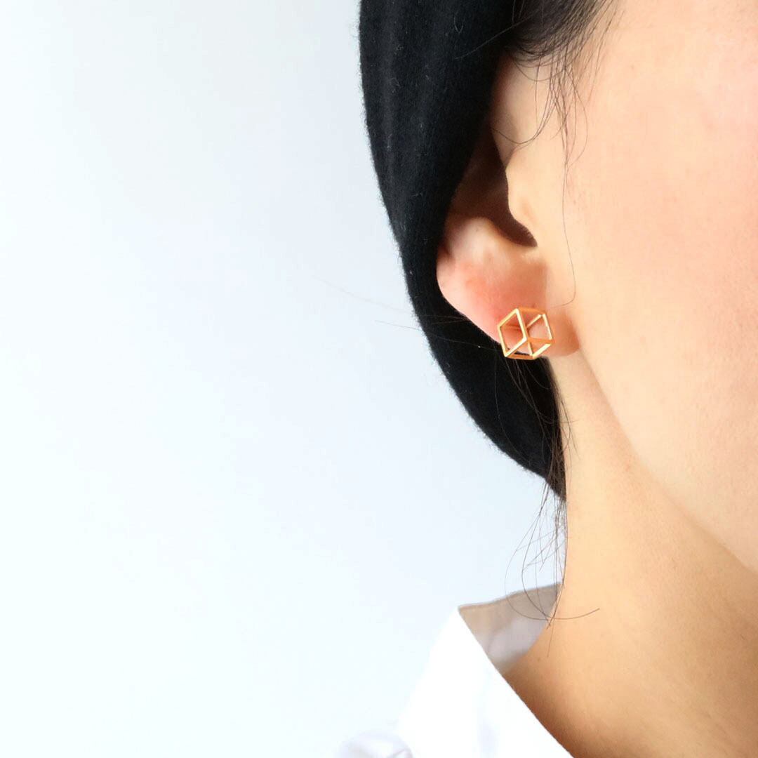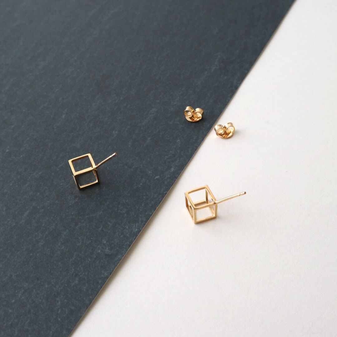 [silver925] 小さい立体スクエアのピアス*ゴールドカラー