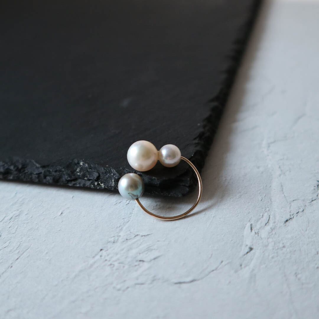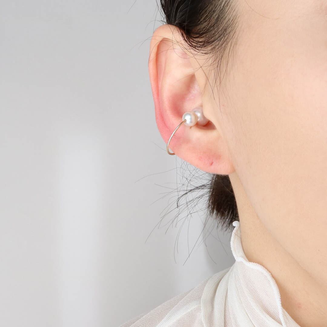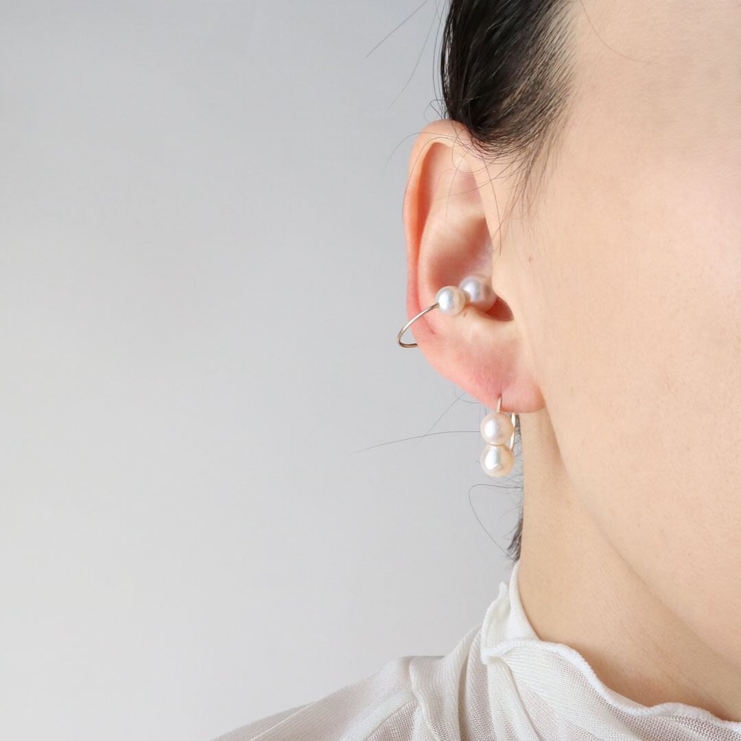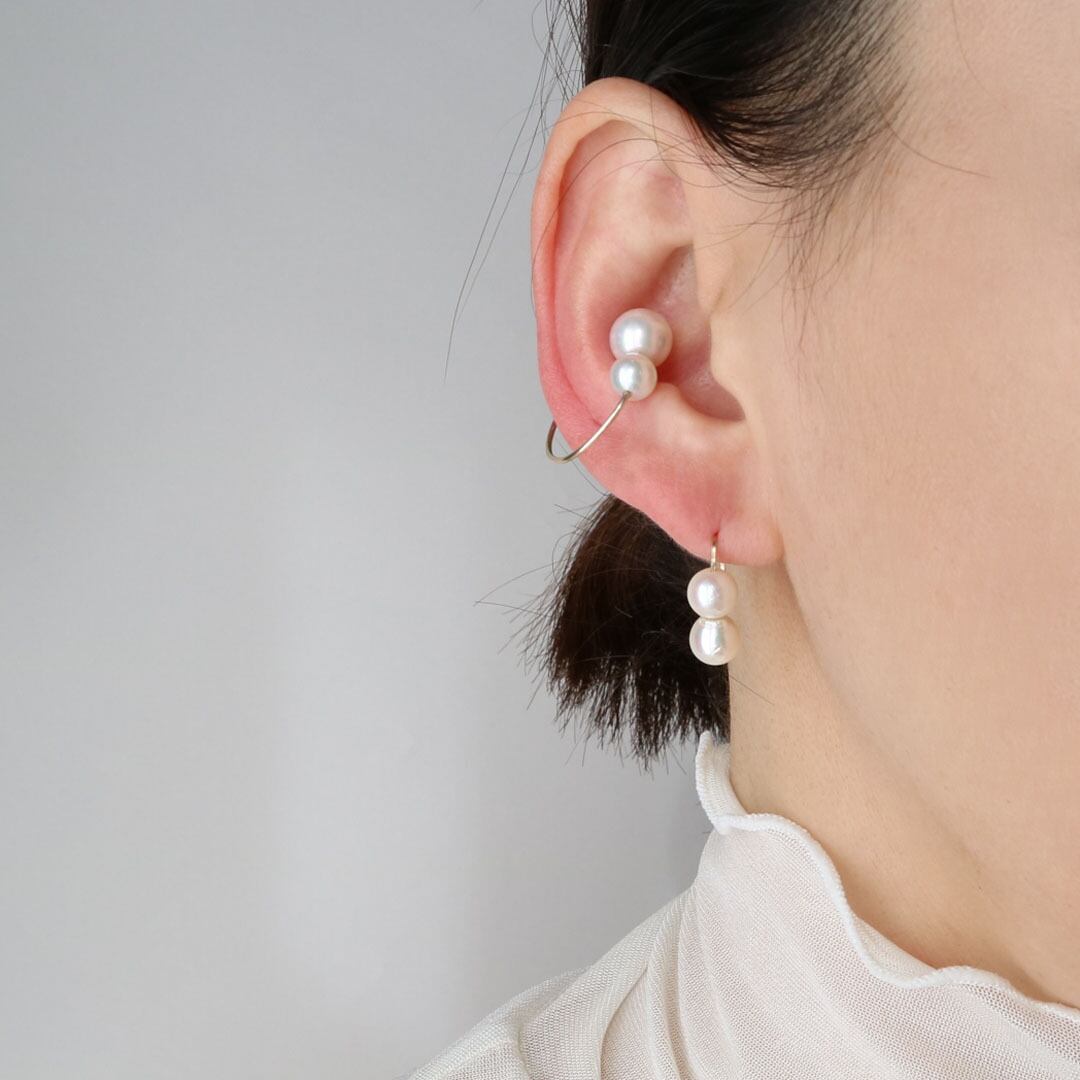 色と大きさが違うアコヤパールがポイントの定番イヤーカフ。