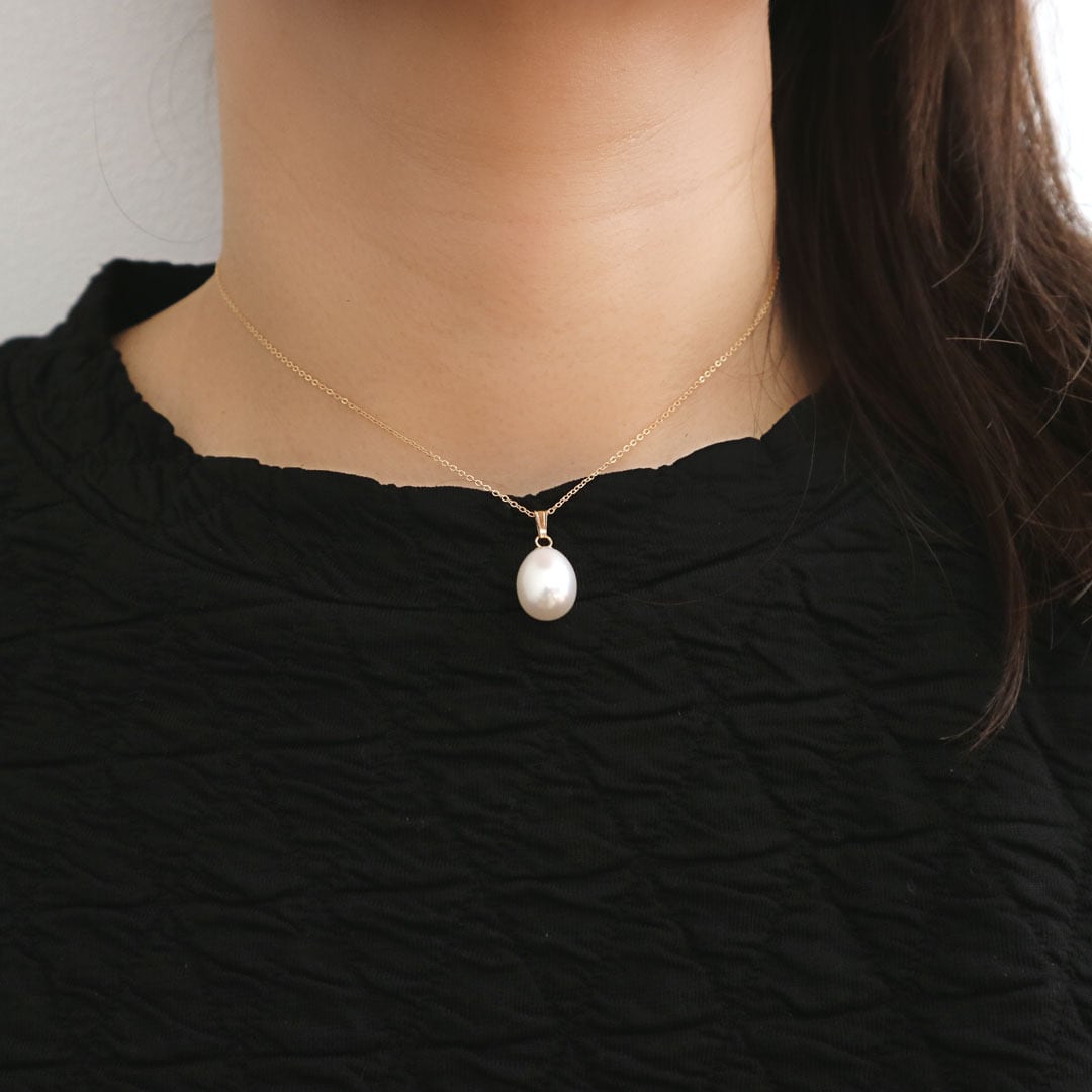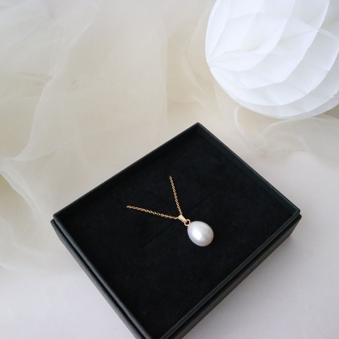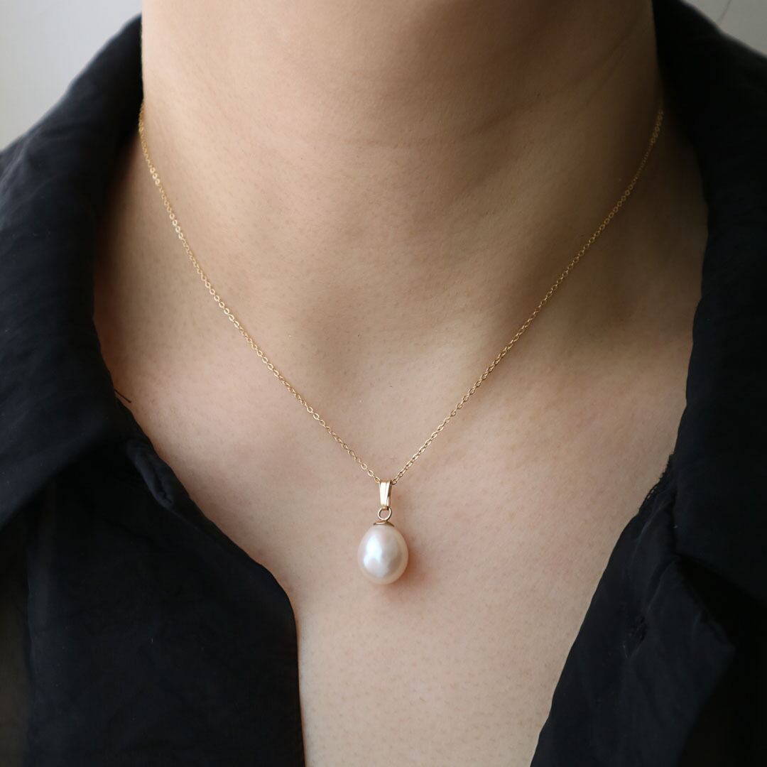 淡水パール独特の美しい輝きと、14kgfのチェーンとの組み合わせが上品さを引き立てます。