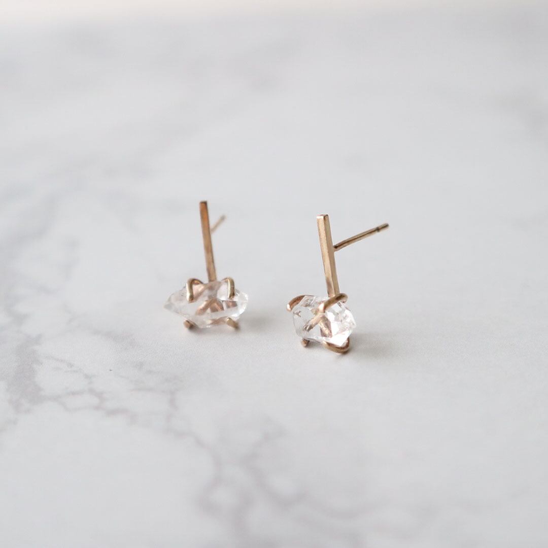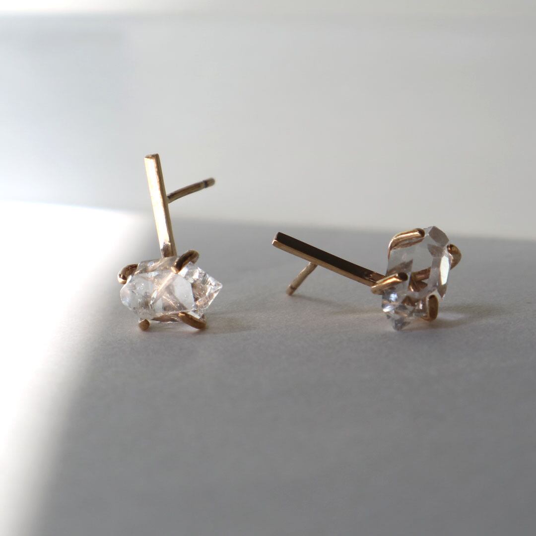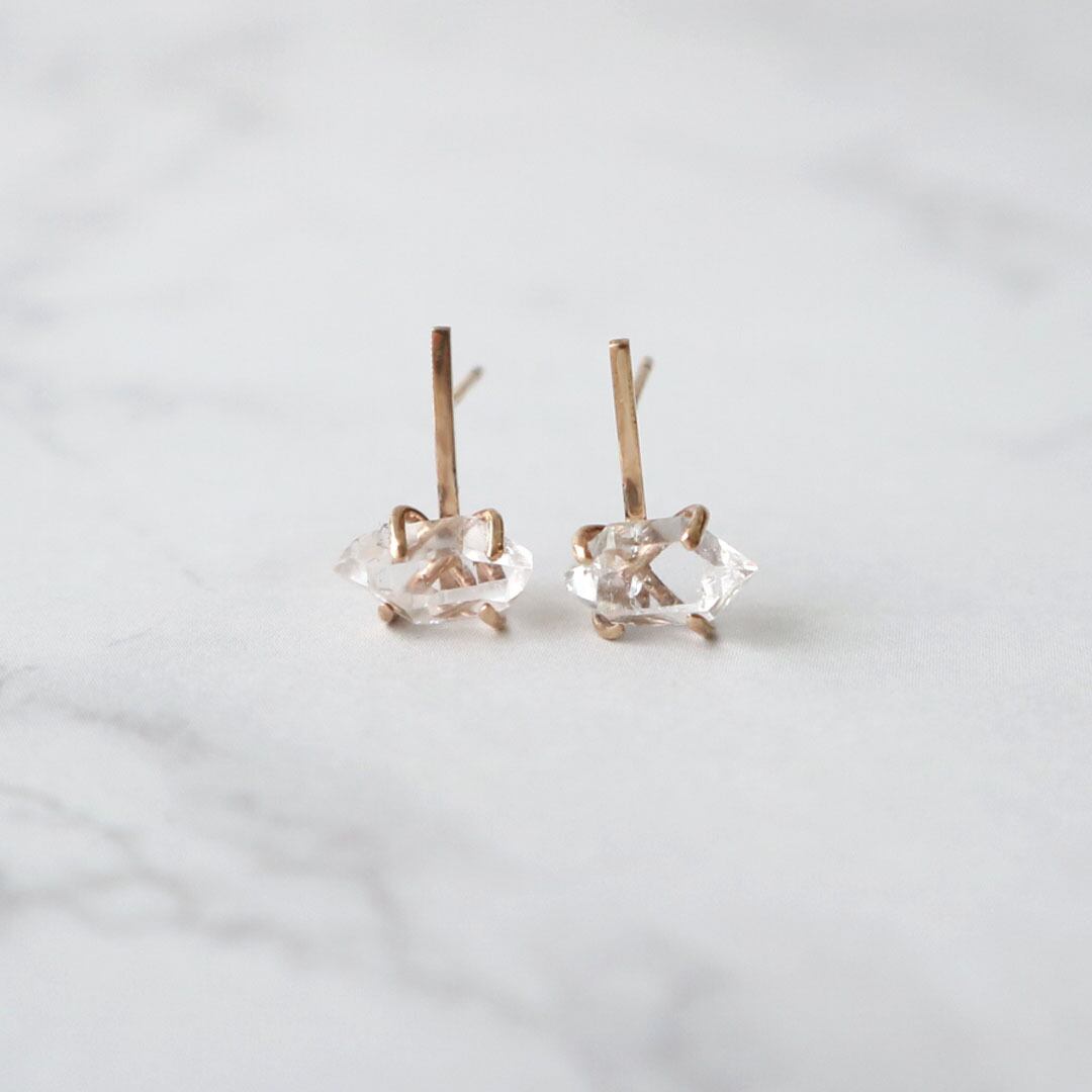 14kgfのバーに煌めくダブルポイントクリスタルのをセッティングした個性的なデザインのピアスです。