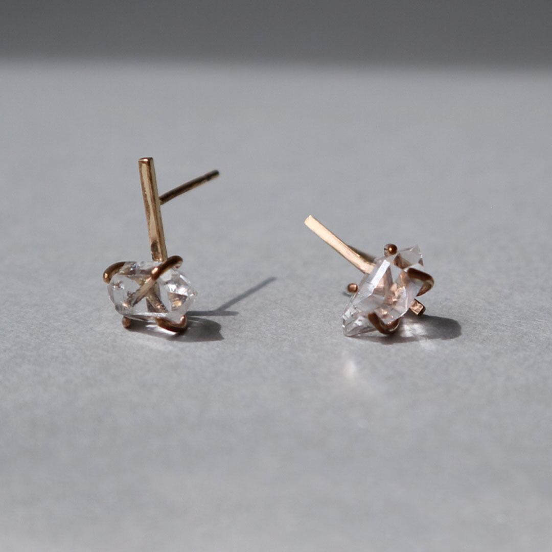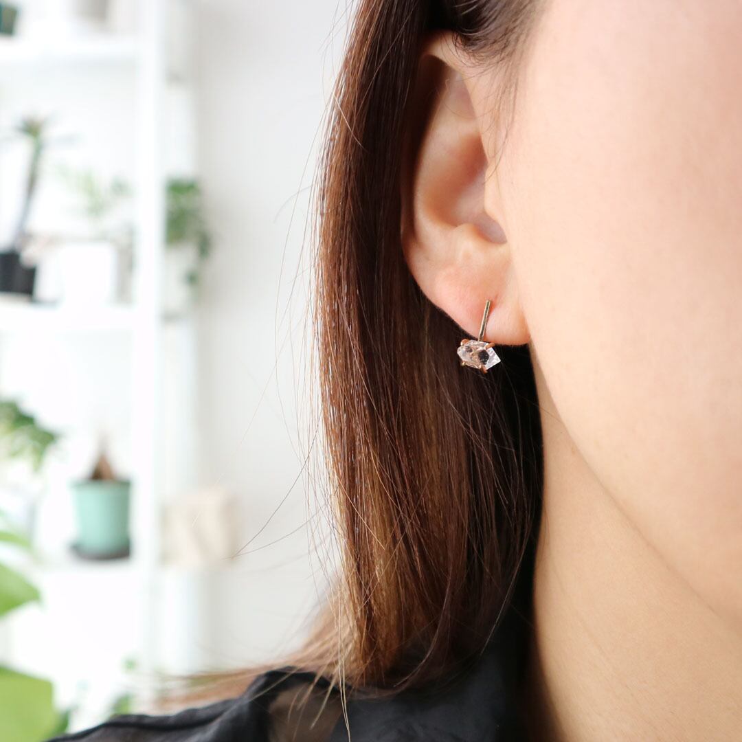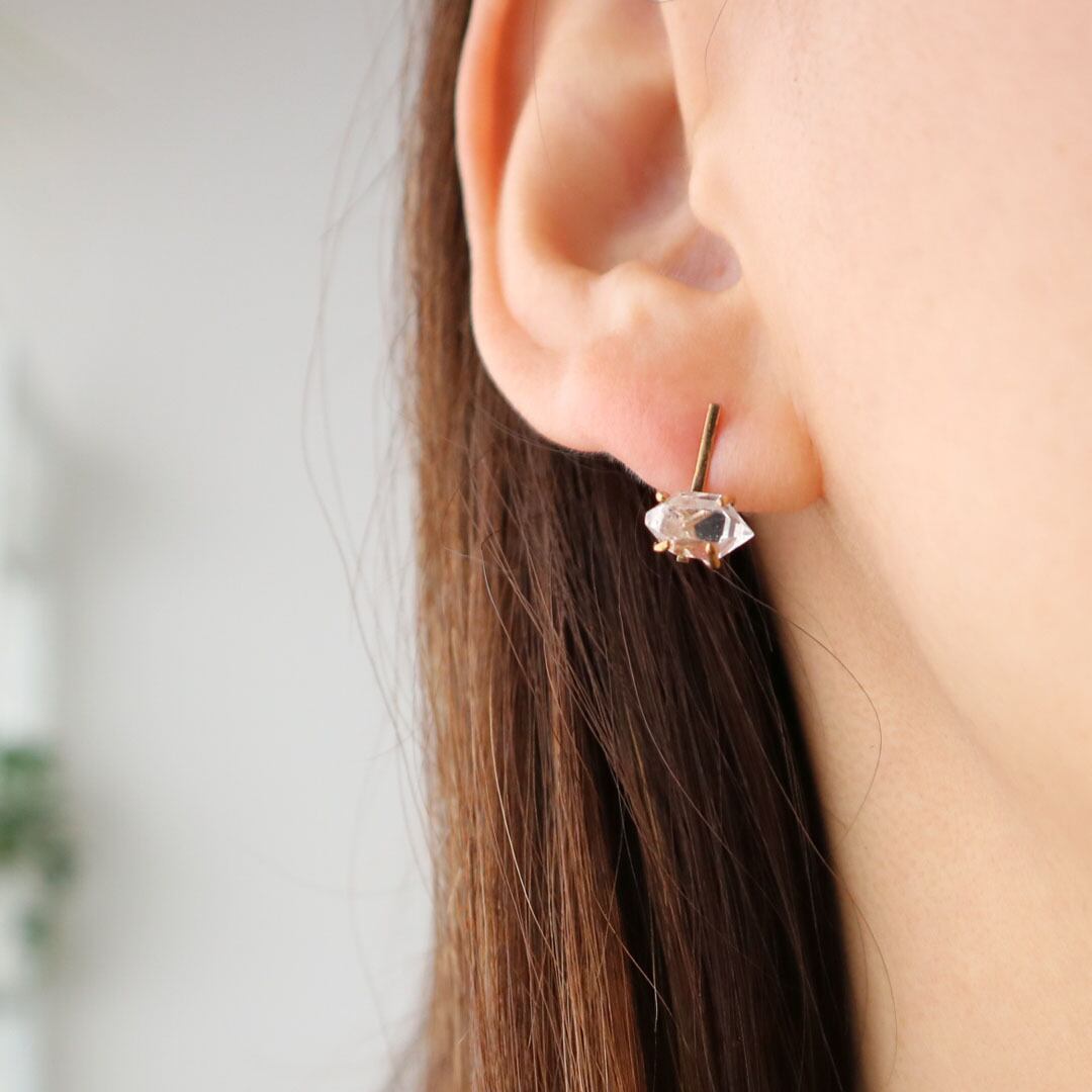 14kgfのバーに煌めくダブルポイントクリスタルのをセッティングした個性的なデザインのピアスです。