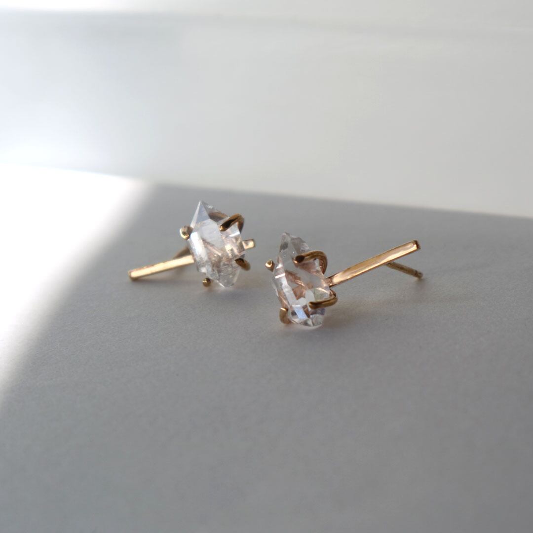 [14kgf]ダブルポイントクリスタルのバーピアス