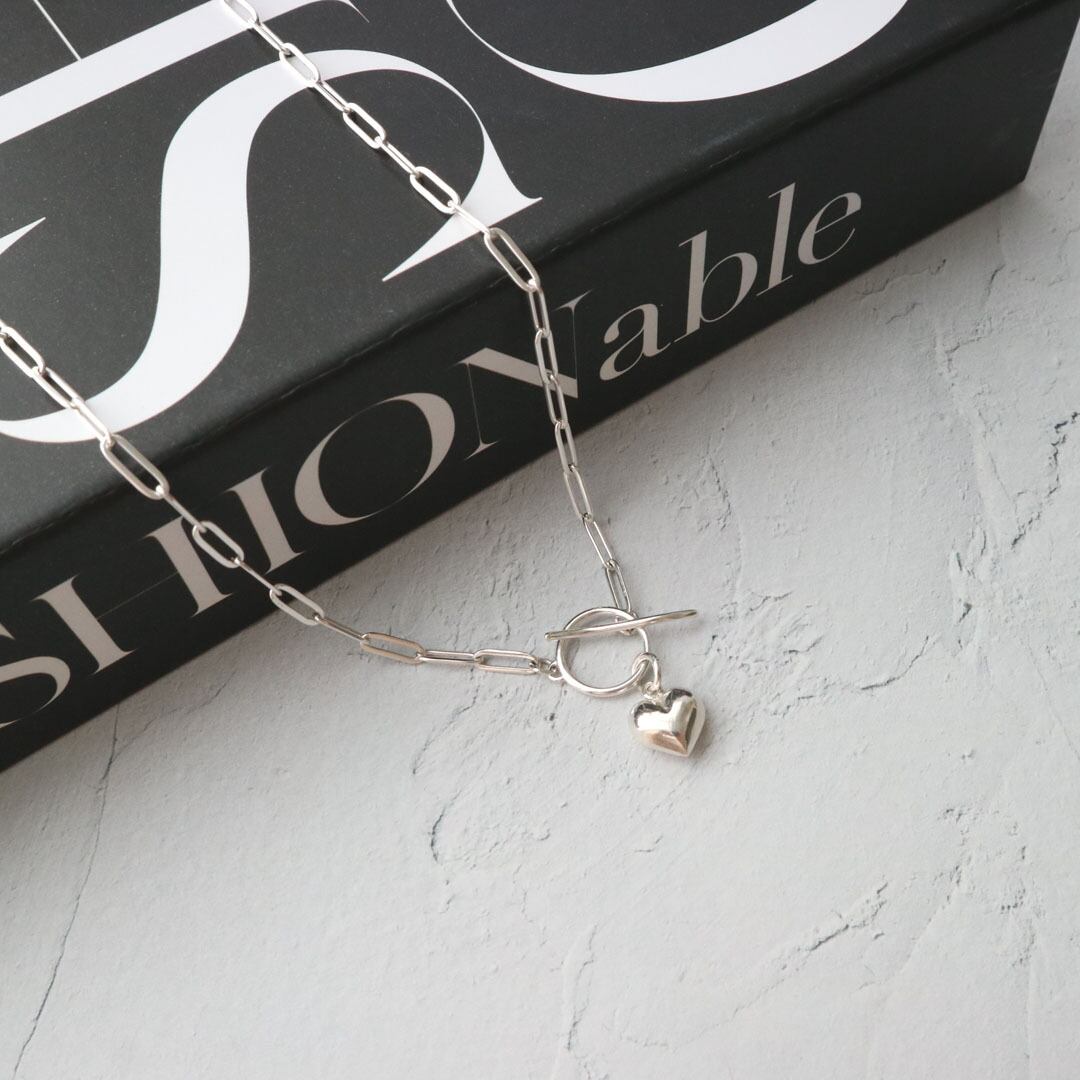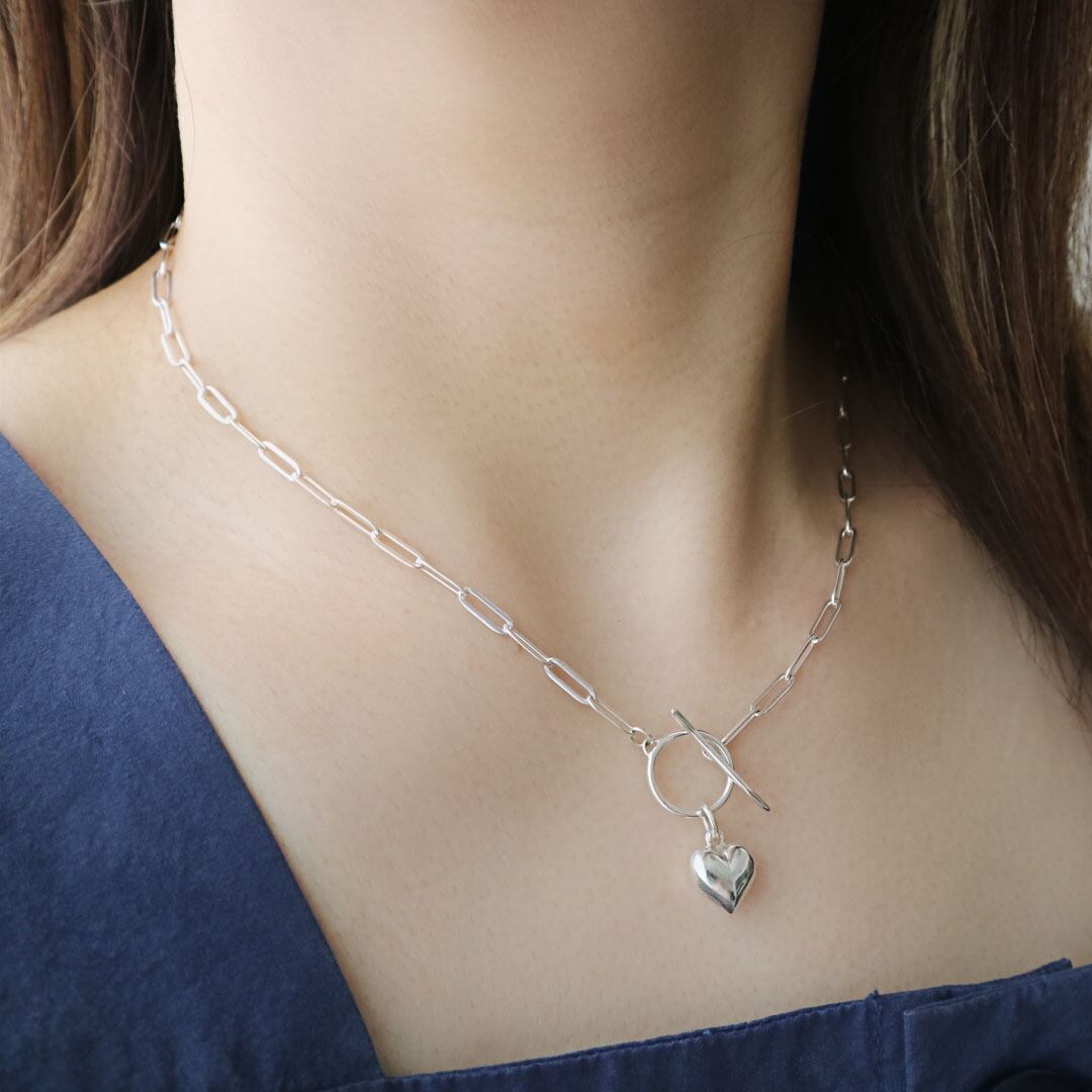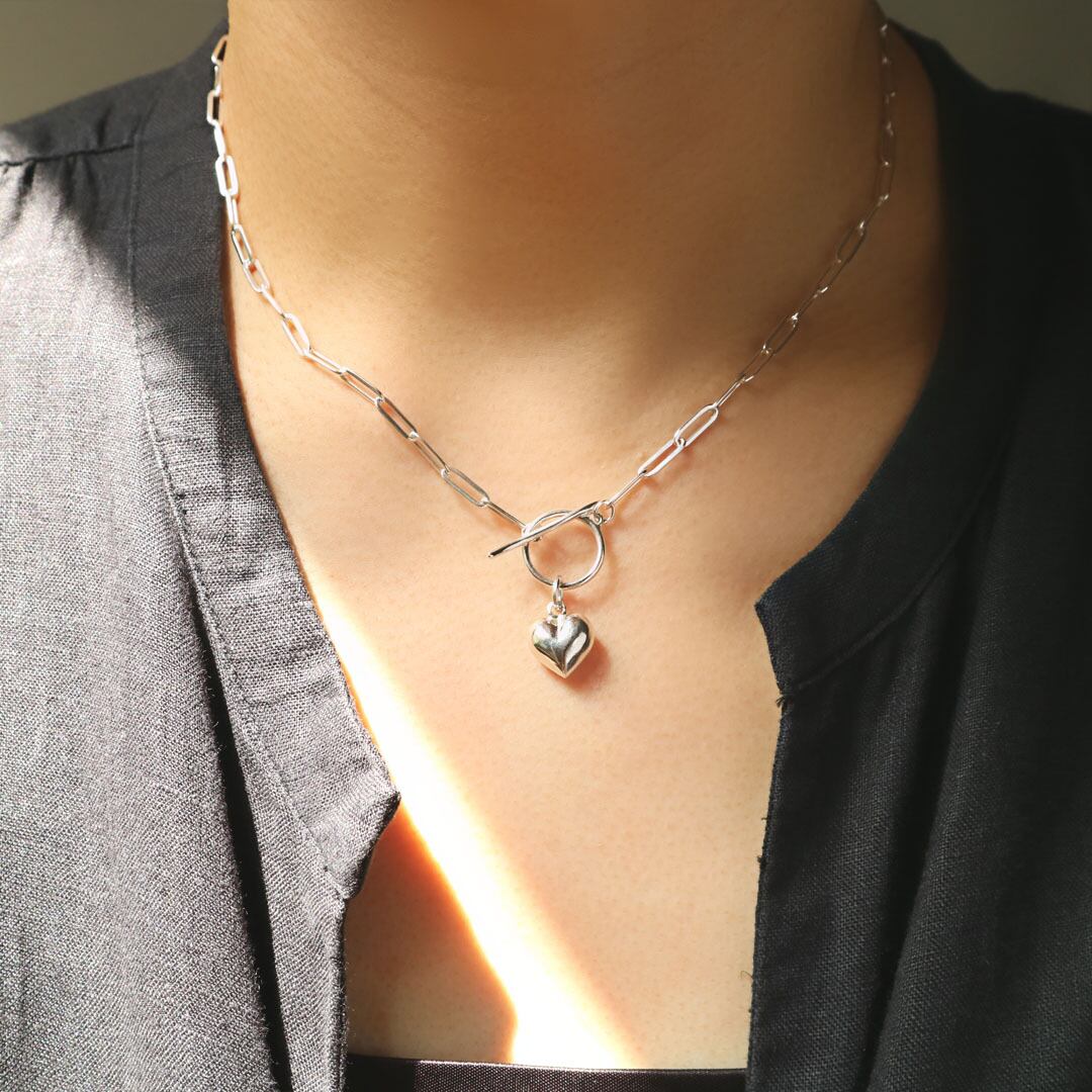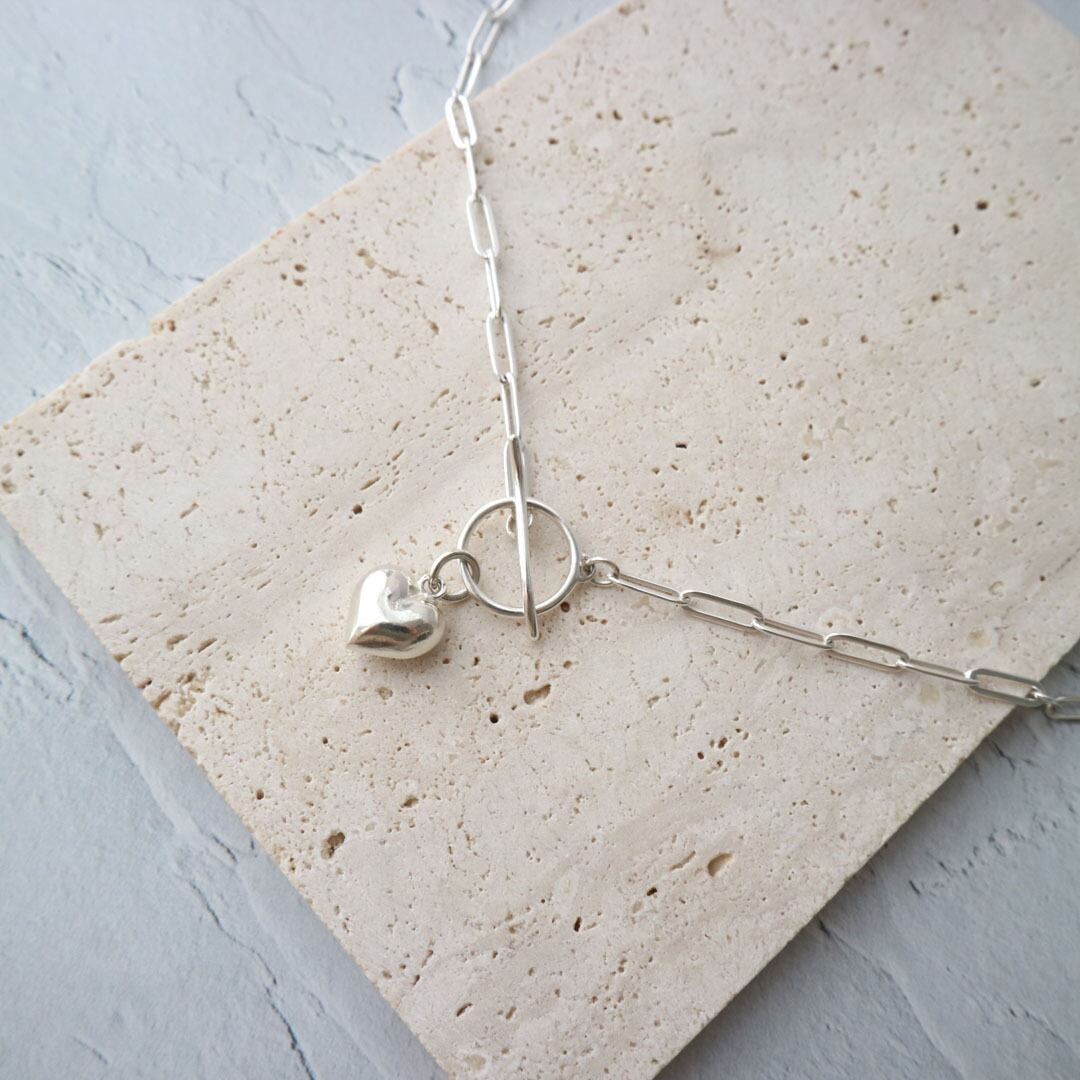 【silver925】ぷっくりハートチャームのマンテルネックレス