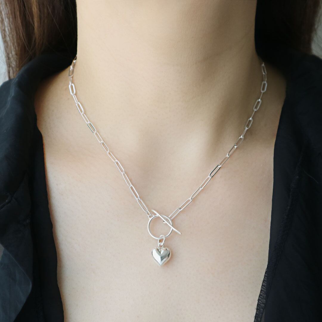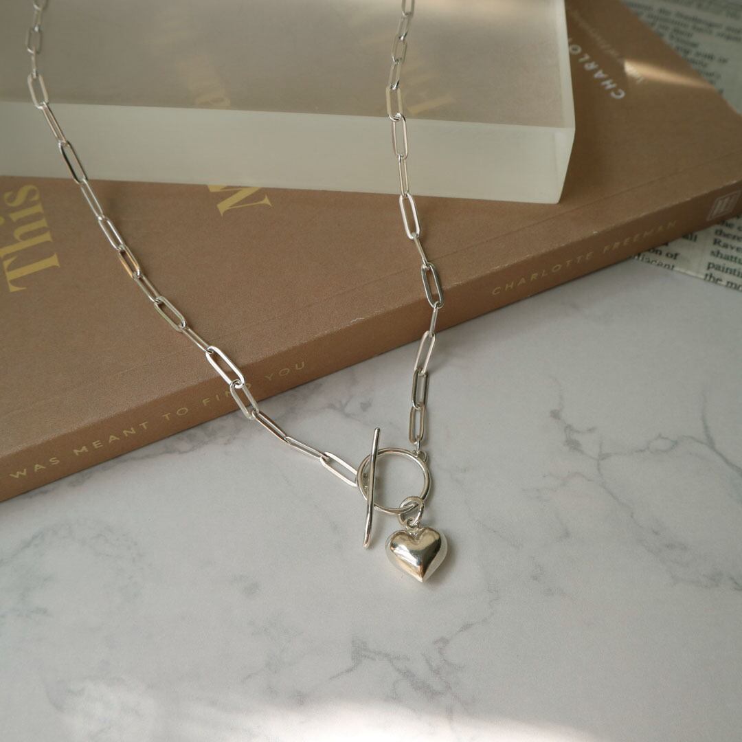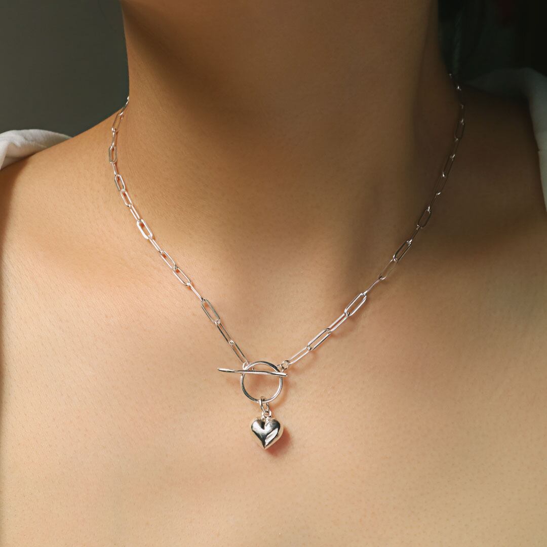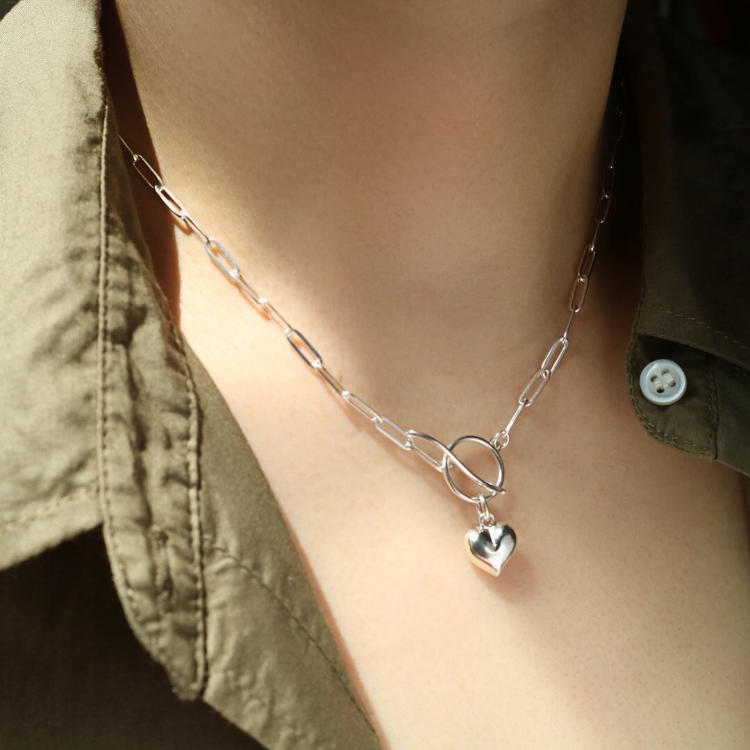 【silver925】ぷっくりハートチャームのマンテルネックレス